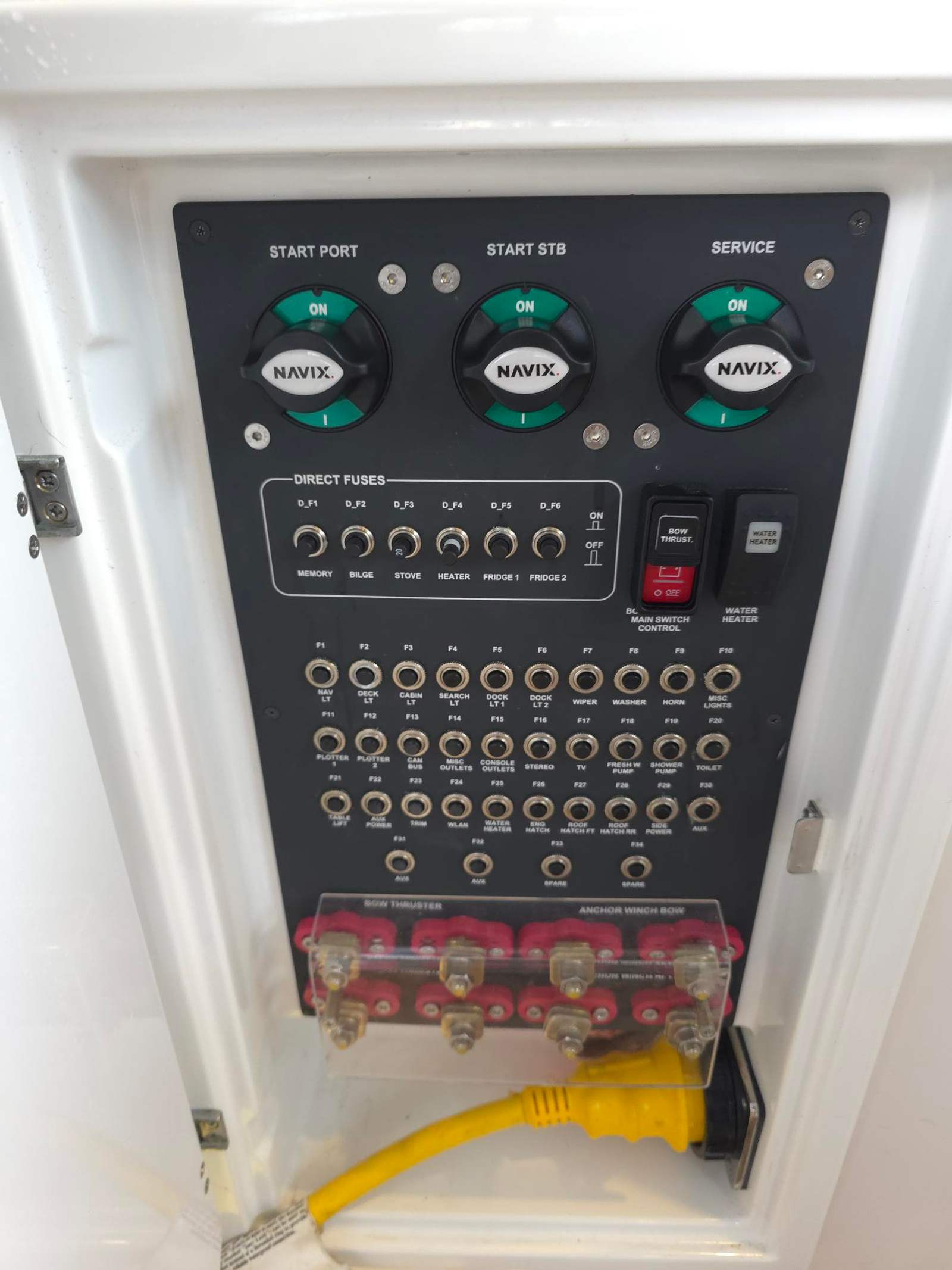 Air conditioning (requires inverter or shore power system) Runs off inverter when not docked and shore power when docked.