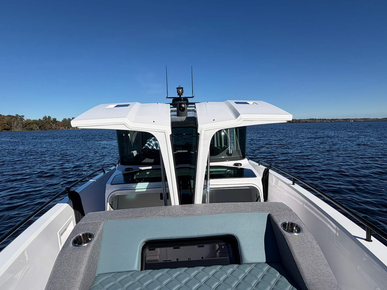 This boat has lived on a lift in the St. Johns River predominantly in fresh and brackish water. This Axopar 37XC has been meticulously maintained