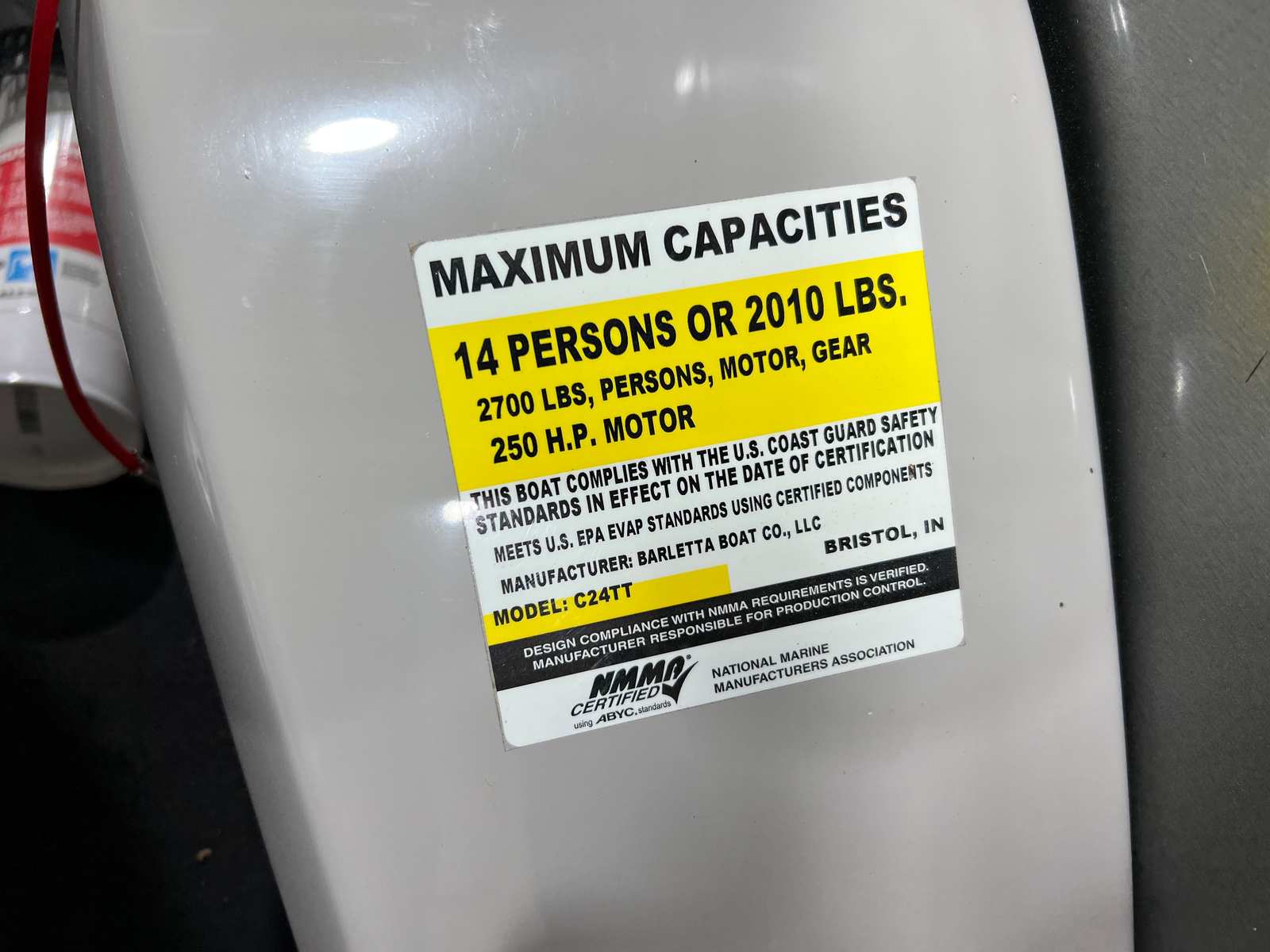 Powered by a robust 200-horsepower engine, the Barletta C24UC delivers an exhilarating yet smooth ride. The single engine setup provides ample power for cruising, water sports, or leisurely exploration. With 67 engine hours, this pontoon boat for sale has been gently used, offering reliable performance and longevity for its next owner. The responsive handling and efficient power delivery ensure you can navigate with confidence, whether you’re gliding across calm waters or picking up speed for a thrilling adventure.