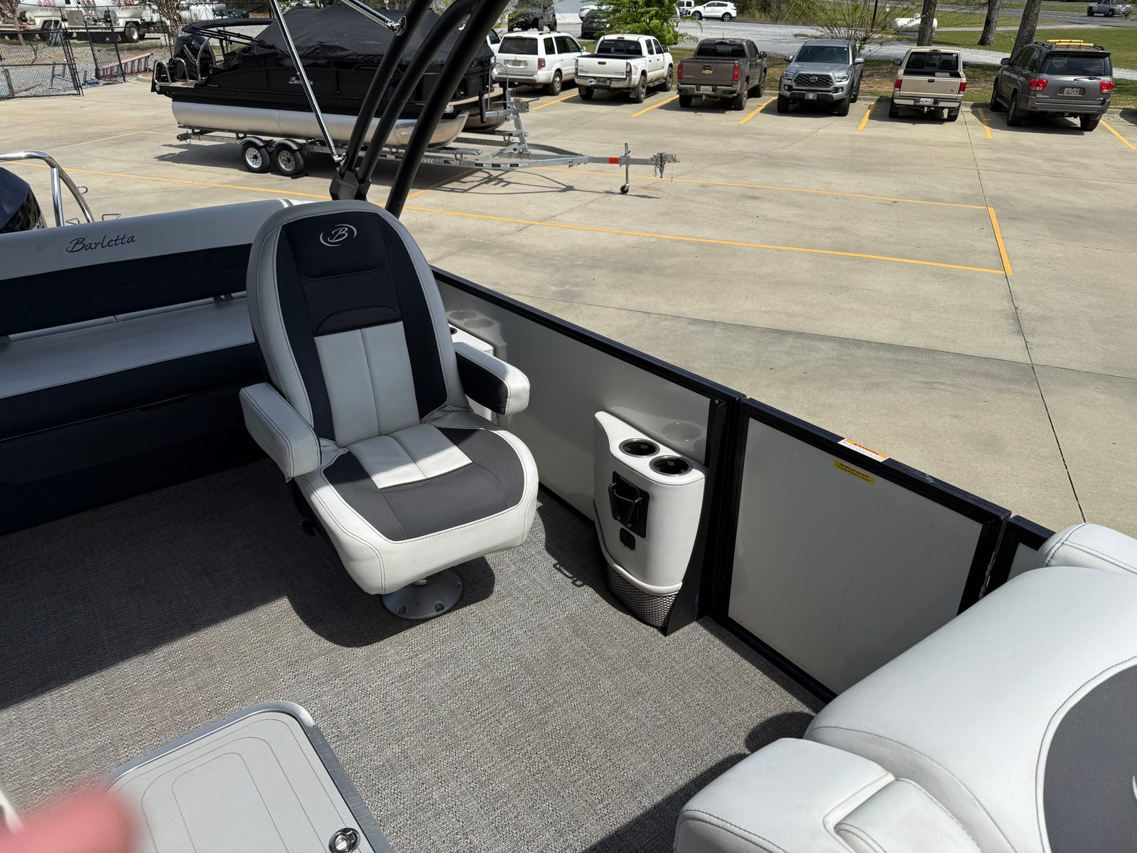 The 2021 Barletta Corsa 23UCA is a 25-foot pontoon that exudes modern style and robust construction. With its sleek lines and contemporary design, this Barletta boat for sale is sure to turn heads at any marina or lakeside gathering. As a used pontoon boat, it offers the perfect balance between value and quality, having been meticulously maintained and boasting only 100 engine hours. The spacious layout ensures ample room for guests, making it ideal for socializing, relaxing, or enjoying a day of water sports.