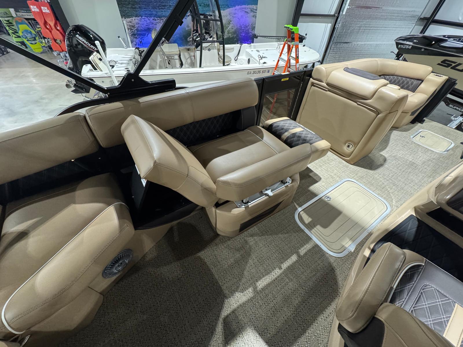 Powering this Barletta pontoon is a single, impressive 300-horsepower engine. This setup provides a thrilling blend of power and efficiency, allowing you to cruise effortlessly across the water or pick up speed for exhilarating rides. The Lusso L23M’s engine is engineered for smooth acceleration and reliable performance, ensuring that every journey is as enjoyable as the destination. Whether you are gliding across calm waters or navigating busier waterways, the Lusso L23M delivers a responsive and confident ride.
