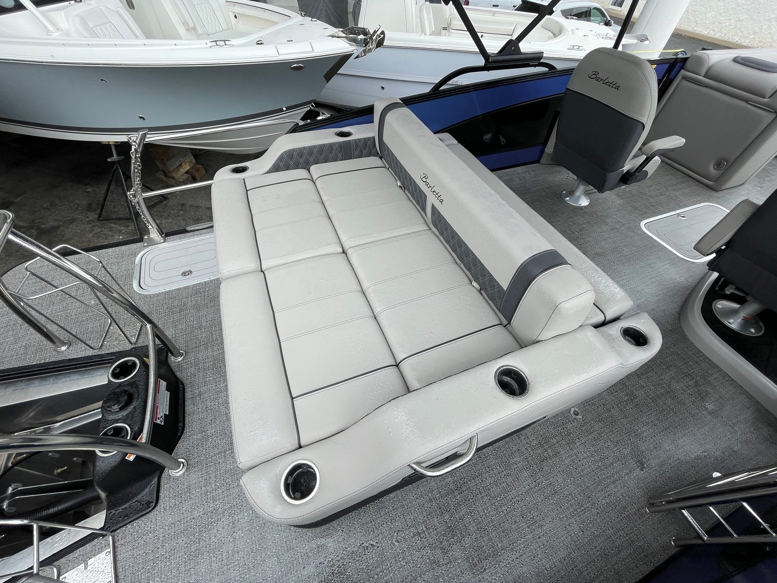 Beyond its recreational appeal, the Barletta Lusso L23UC offers practical benefits that make ownership a breeze. The generous deck space provides plenty of room for storing gear, coolers, and water toys, so you’re always prepared for a day of adventure. The boat’s layout is designed for easy movement and accessibility, making docking and boarding simple and stress-free.Fuel efficiency is another advantage of this pontoon boat, allowing you to spend more time on the water and less time refueling. The Lusso L23UC’s reliable engine and sturdy construction mean you can count on it for years of trouble-free operation, minimizing maintenance and maximizing enjoyment. Whether you’re planning a quick outing or an extended trip, this Barletta boat for sale offers the versatility and convenience you need to make the most of your boating lifestyle.