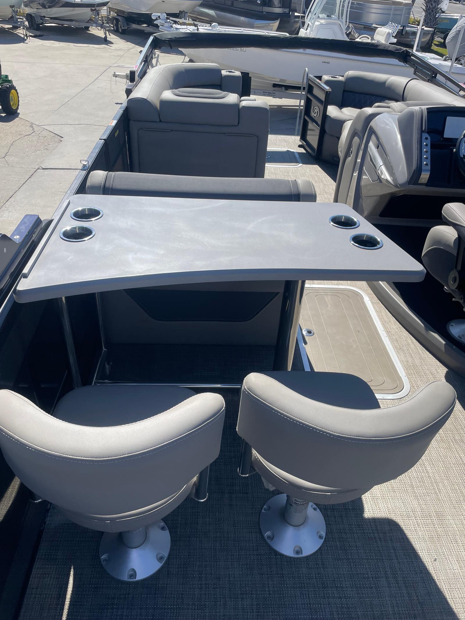 In addition to its luxurious amenities, the Barletta Lusso L25UE offers practical benefits that make ownership a breeze. The spacious layout provides ample storage for gear, coolers, and water toys, ensuring everything you need is within easy reach. Docking and maneuvering are simplified thanks to the responsive handling and single-engine setup, making it easy to navigate tight spaces or busy marinas. The efficient 300 HP engine delivers both power and fuel economy, allowing you to spend more time on the water and less time at the fuel dock. Whether you are planning a weekend getaway or a quick afternoon escape, this pontoon boat is designed to make every outing enjoyable and stress-free.