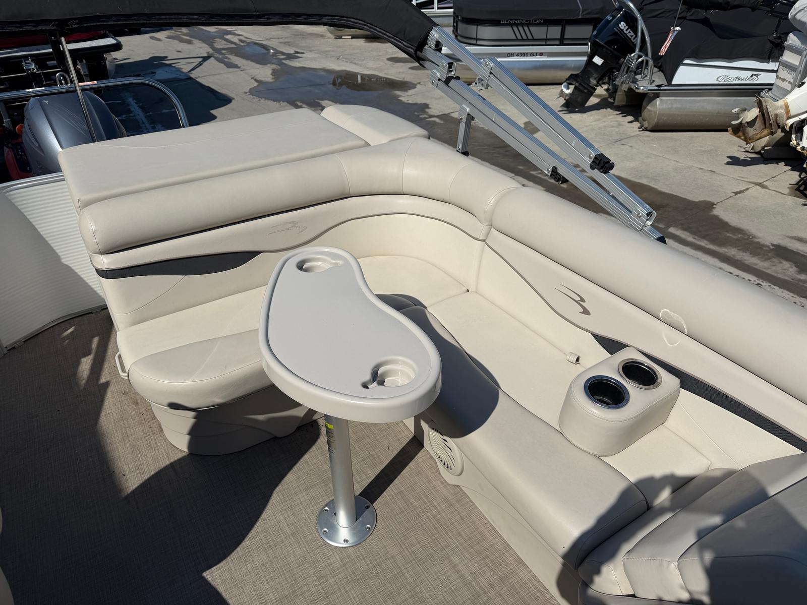 At the heart of this Bennington 21 SLX is a powerful single engine delivering an impressive 150 horsepower. This robust engine ensures smooth acceleration, responsive handling, and plenty of power for cruising, watersports, or simply exploring your favorite lakes and rivers. With only 165 engine hours, the motor has plenty of life left, offering reliable performance and peace of mind for your boating excursions. Whether you are gliding across calm waters or picking up speed for a thrilling ride, the 21 SLX provides a dynamic and enjoyable boating experience.
