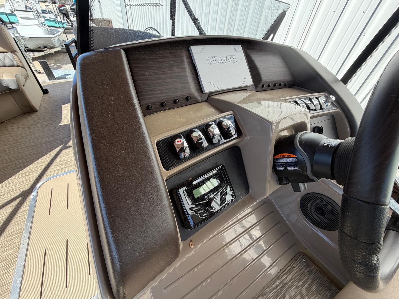 The 2023 Bennington 24 Lxsb pontoon boat is designed with both comfort and convenience in mind. Its spacious 24-foot deck offers plenty of room for entertaining, lounging, and making memories with loved ones. The open layout allows for easy movement throughout the boat, while plush seating ensures everyone can relax in style. The pontoon’s sturdy construction and high-quality materials reflect Bennington’s dedication to excellence, providing peace of mind and lasting value.This used pontoon boat for sale also features a modern helm with intuitive controls, making navigation a breeze for both seasoned boaters and newcomers alike. The thoughtful design extends to every detail, from the ample storage compartments for your gear and supplies to the stylish accents that set this Bennington boat apart from the competition.