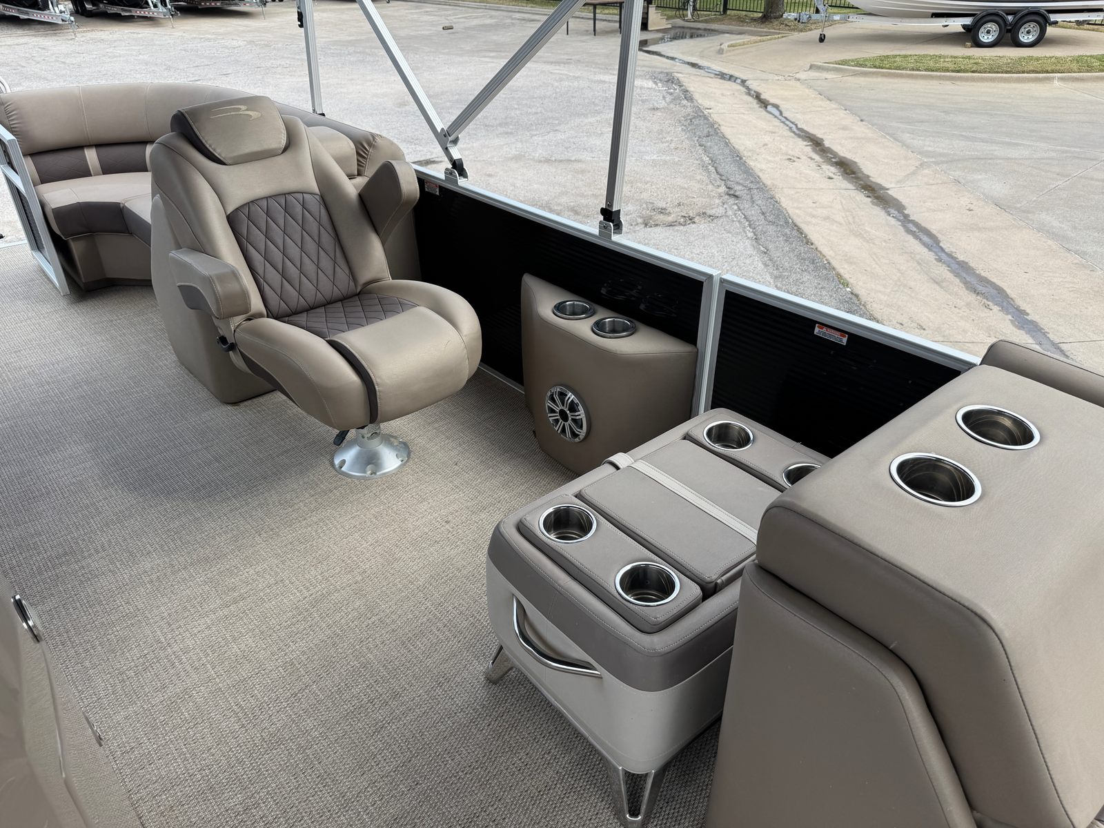 The Bennington 25 Ssrxp is engineered with attention to detail, offering a range of features that enhance comfort, convenience, and fun. The spacious 23-foot deck provides ample room for seating, socializing, and moving about, making it ideal for groups of all sizes. The pontoon’s layout is designed for versatility, allowing you to customize your experience whether you are hosting a lively gathering or enjoying a quiet afternoon on the water.Special features of the Bennington 25 Ssrxp include plush, ergonomic seating that ensures everyone on board can relax in style. The high-quality construction and premium materials used throughout the boat reflect Bennington’s commitment to durability and luxury. The pontoon’s design maximizes usable space, offering plenty of room for coolers, gear, and personal items, so you can bring everything you need for a full day of fun.