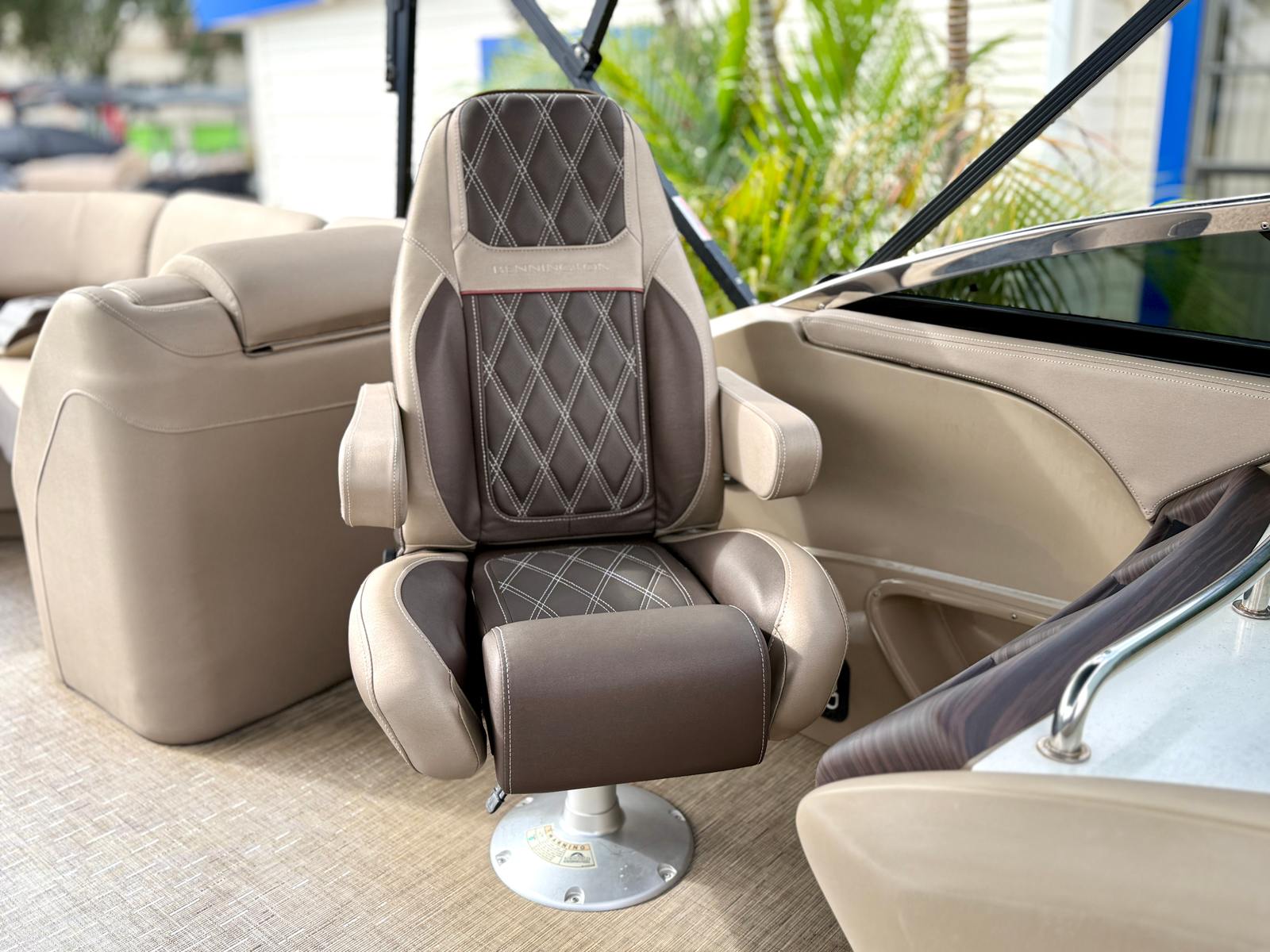The Bennington 27 QXFBWAX2 is packed with features that enhance both comfort and functionality. Its expansive deck layout provides plenty of space for guests to relax, socialize, and soak up the sun. The high-quality construction and attention to detail are evident throughout, from the plush seating to the stylish accents that define the Bennington brand. The dual-engine setup not only boosts performance but also adds an extra layer of safety and maneuverability, making docking and navigating tight spaces a breeze.This pontoon boat’s length of over 27 feet ensures generous seating and lounging areas, perfect for hosting gatherings or enjoying quiet moments on the water. The thoughtful design maximizes usable space, offering plenty of room for coolers, gear, and personal items without feeling crowded. Every aspect of the Bennington 27 QXFBWAX2 is crafted to deliver a premium boating experience, whether you are out for a day trip or an extended adventure.