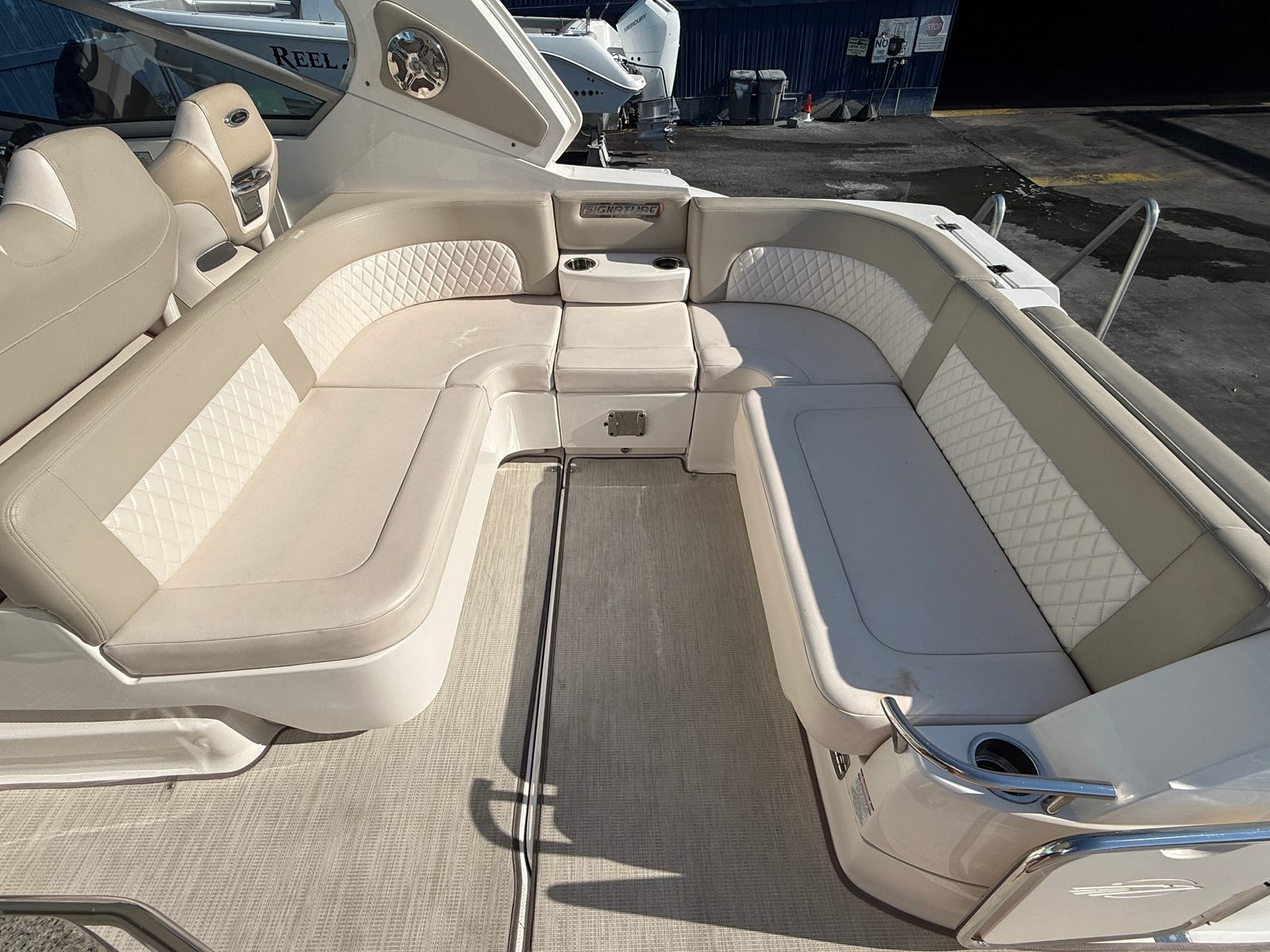 Check out this gorgeous 2018 Chaparral 330 Signature powered with twin Volvo 300 V8 Joystick controlled engines with only 340 hours of use! This boat has been stored in a premium indoor dry storage facility and by her condition it shows! The black gel coat and cockpit vinyl are in great condition! This boat has a full Garmin electronics package with GPS and VHF along with a great sunpad cushion on the forward deck. Its got a great downstairs layout with forward berth, full galley and head and a great midship sitting area that can be converted to a berth. This is an excellent coastal cruising boat that you can overnight on or enjoy for the day! Lots of upgrades and great layout make this one of the most popular cruisers of its kind! Only asking $209,900, this is a deal! Call Legendary Marine at 850-687-1776 or email tvroyall@legendarymarine.com to make your appointment or make your offer today!!!