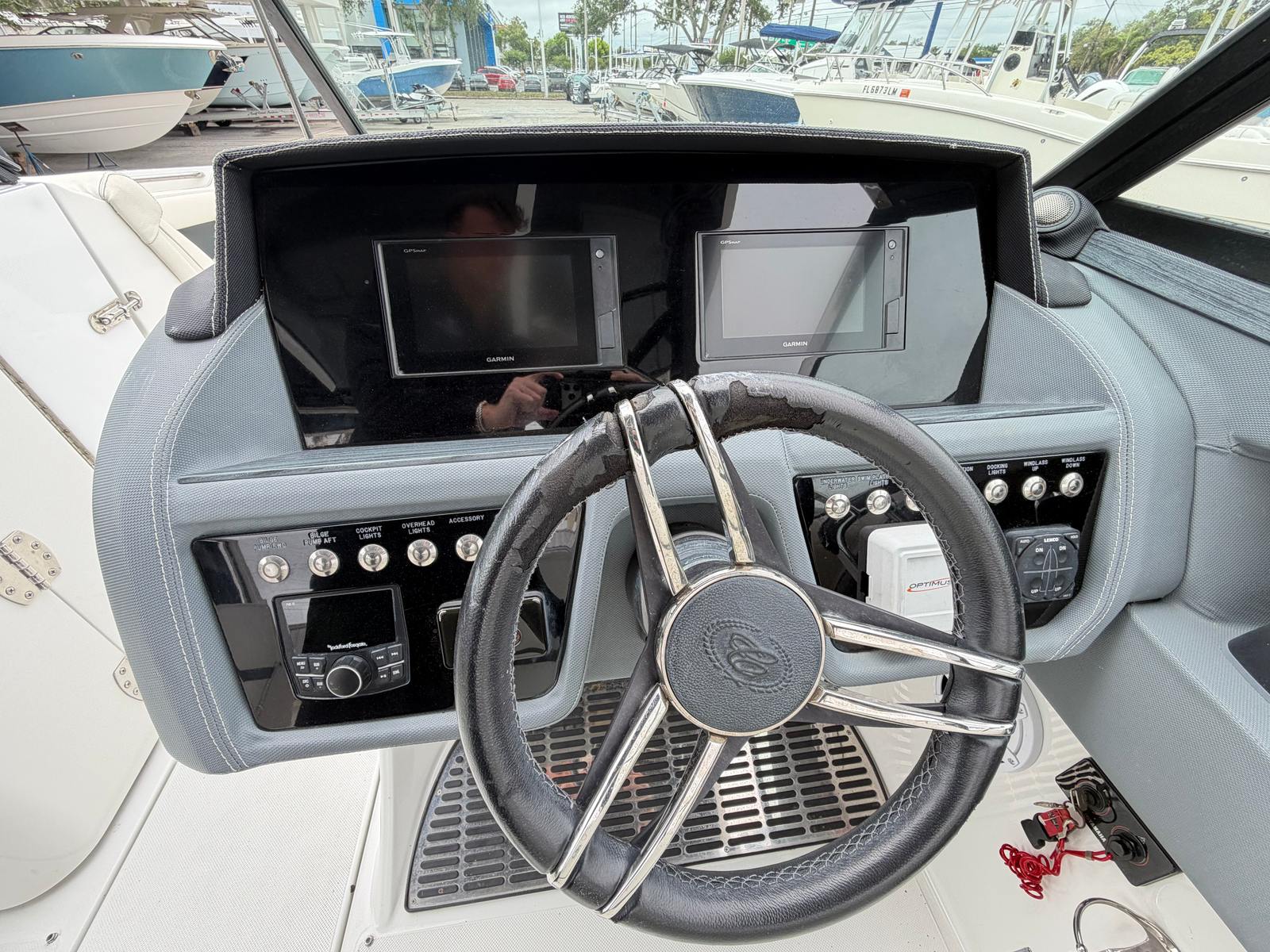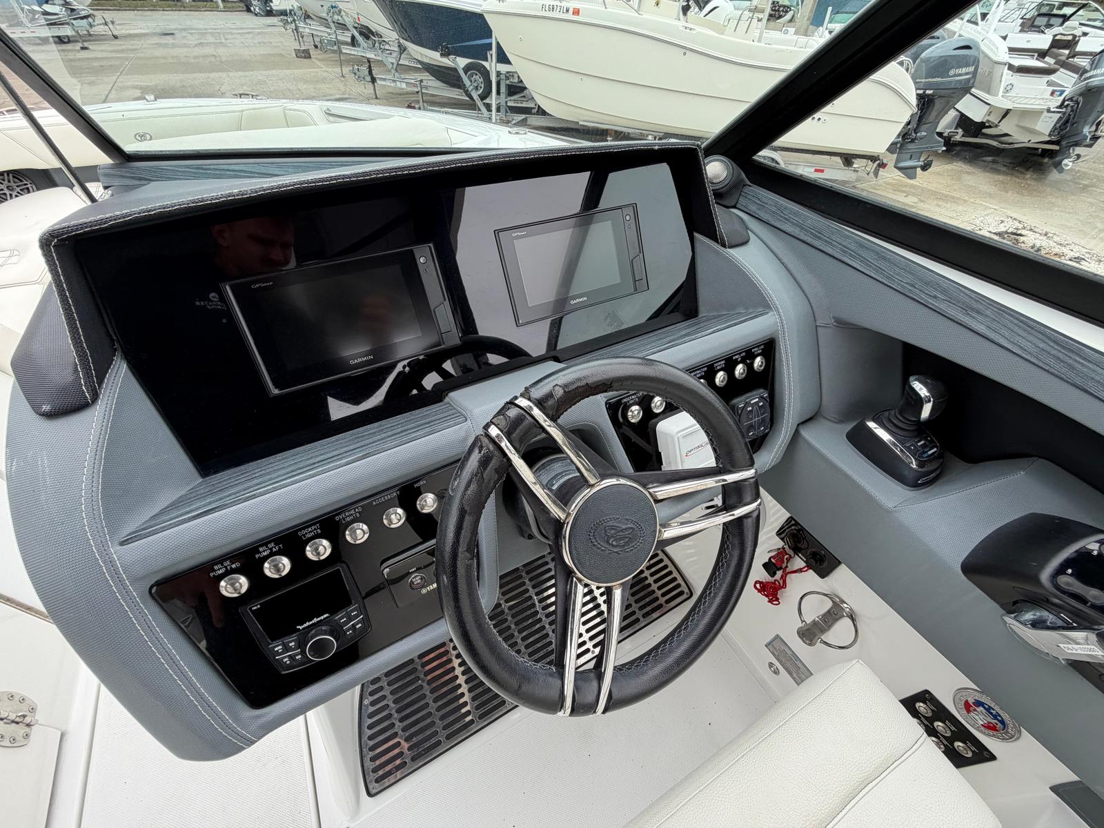 The 2021 Cobalt 30 SC is a stunning example of modern boat engineering, measuring just over 29 feet in length. Its sleek lines and sophisticated design make it a true head-turner at any marina or dock. As a center console boat, the 30 SC offers exceptional visibility and maneuverability, making it ideal for a variety of on-water activities. The used condition of this Cobalt boat for sale ensures you get premium quality and performance at a more accessible price point, without sacrificing the luxury and reliability that Cobalt is known for.