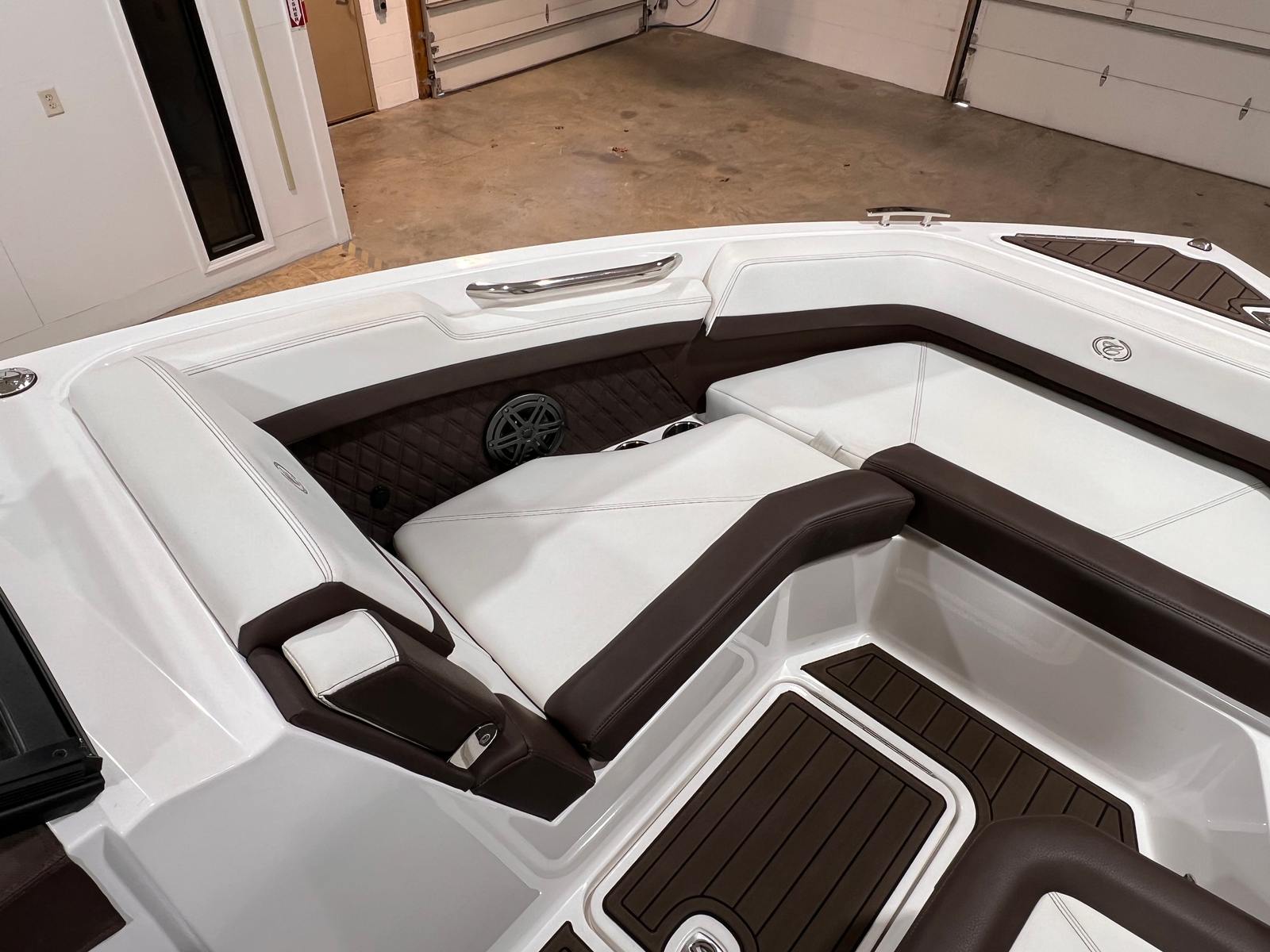 The 2023 Cobalt R6 is loaded with features that enhance both comfort and convenience, making every outing a pleasure. As a premium bowrider boat for sale, the R6 offers a spacious and thoughtfully designed cockpit, plush seating, and high-quality materials throughout. The open bow layout provides plenty of seating for guests, while the ergonomic helm ensures the captain enjoys both comfort and control. The R6’s generous length allows for a roomy swim platform, making it easy to access the water for swimming, lounging, or watersports. Storage compartments are strategically placed to keep your gear organized and out of the way, ensuring a clutter-free environment on board.