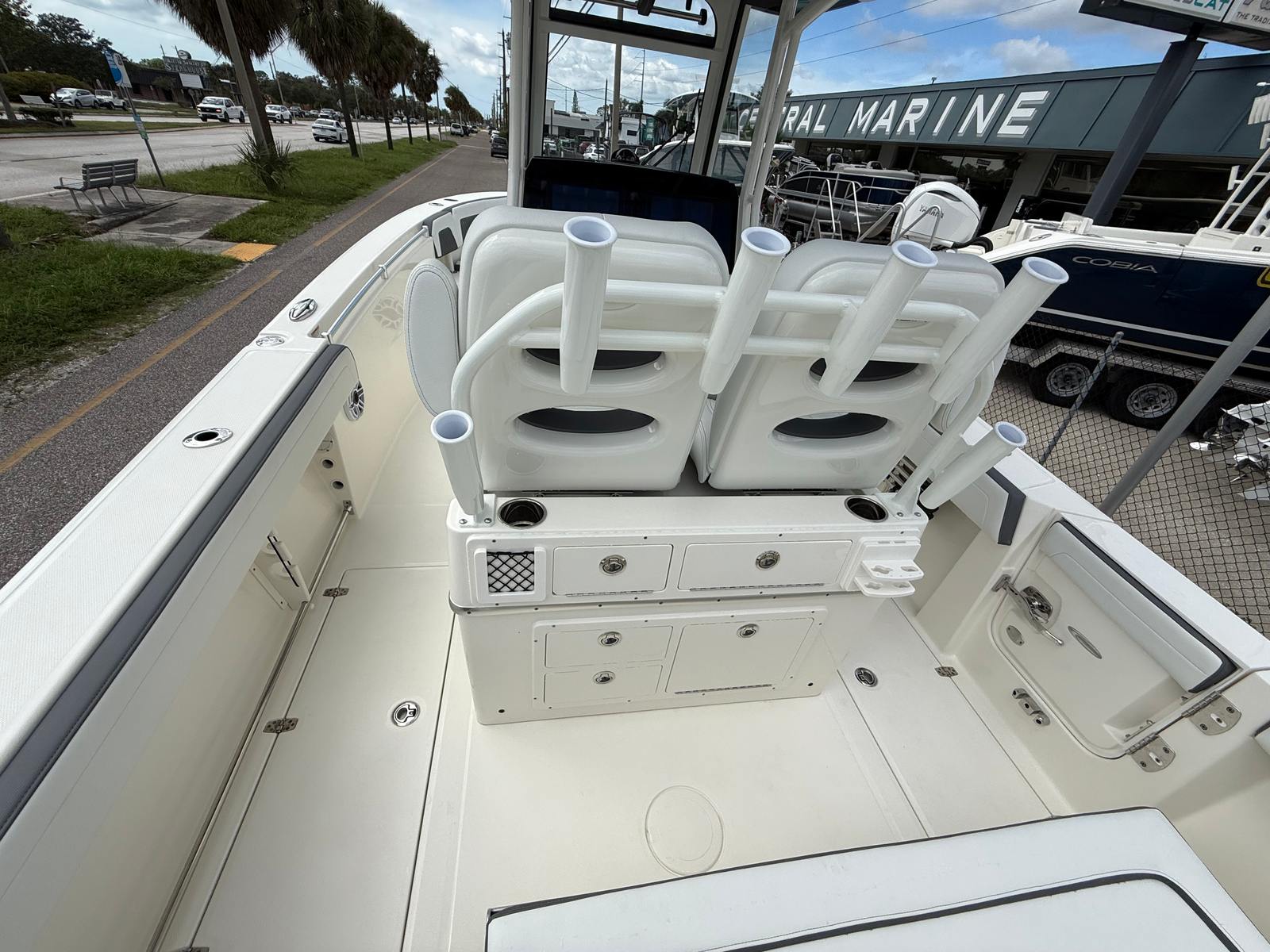The Cobia 265 CC shines in a variety of scenarios, making it a versatile choice for different boating adventures. For families, the spacious deck and comfortable seating create the perfect setting for weekend outings, picnics, and swimming excursions. Anglers will appreciate the dedicated tackle station and tackle center, as well as the ample deck space for casting and reeling in the day’s catch.This Center Console boat is equally suited for luxury getaways, with its stylish design and premium amenities providing a touch of elegance to every trip. Whether you’re exploring hidden coves, entertaining guests, or embarking on offshore fishing expeditions, the Cobia 265 CC delivers the performance, comfort, and versatility you need to make the most of your time on the water.