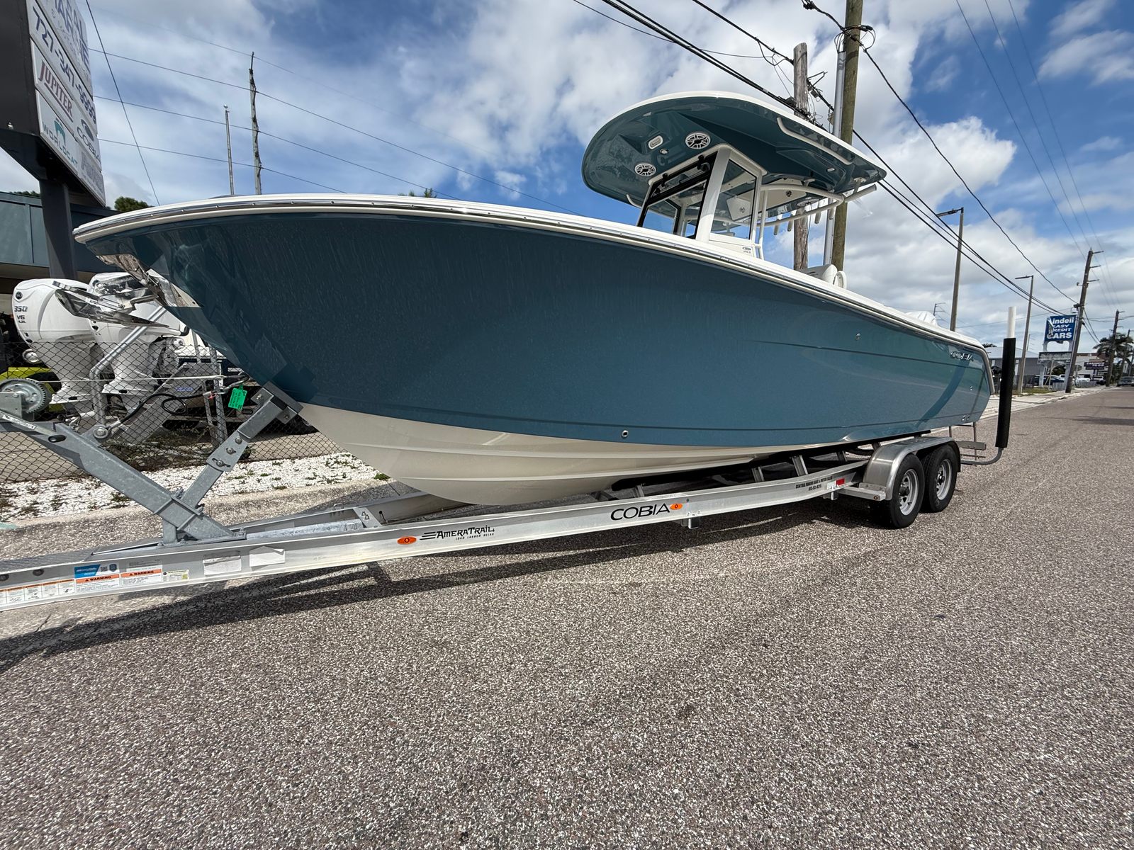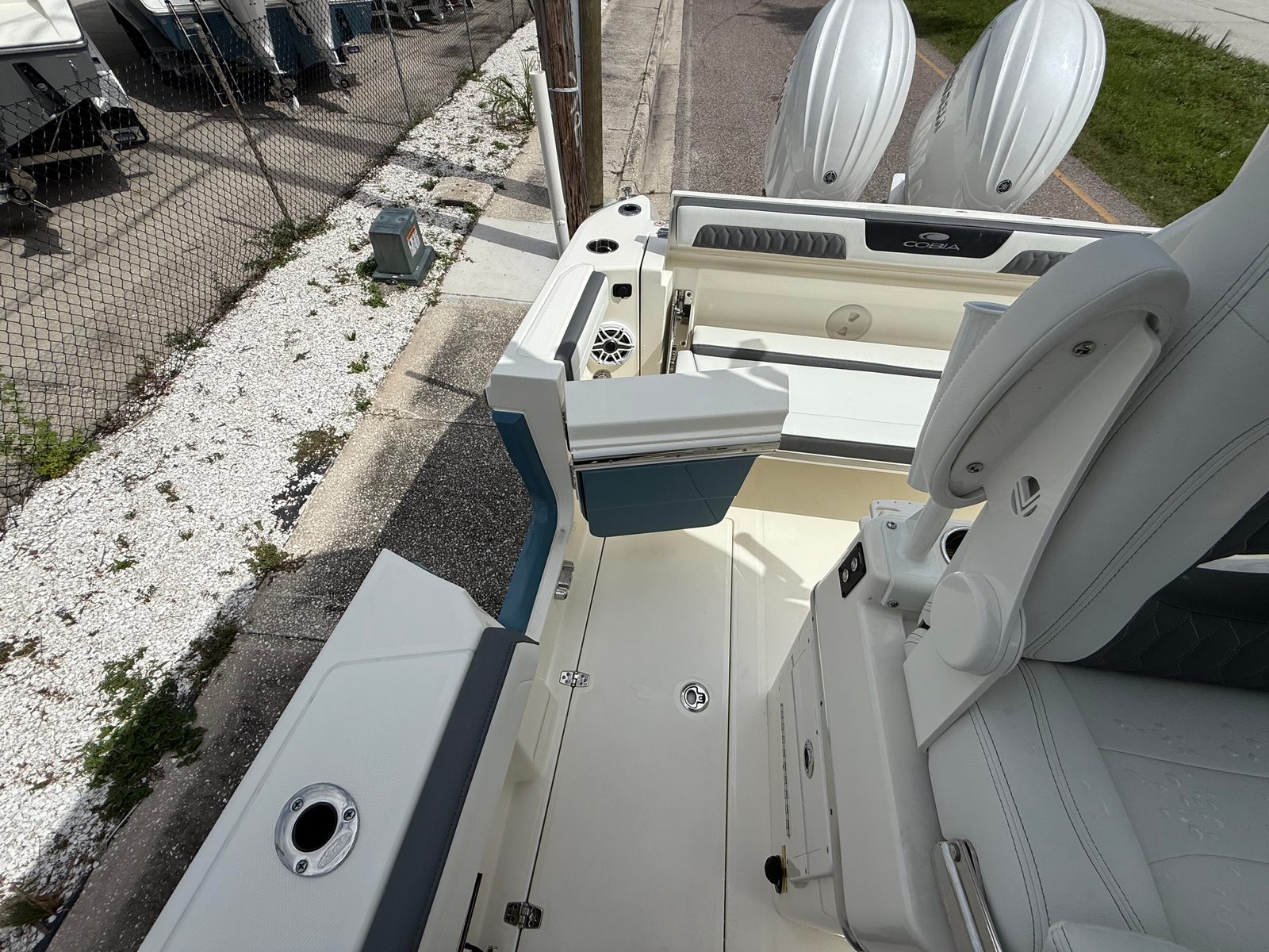 This Cobia boat for sale comes loaded with premium features designed to enhance your time on the water. The Helm Master system provides intuitive control and maneuverability, making docking and tight turns a breeze. GEM stainless steel components add durability and a polished finish, while the trim tabs and trim tab indicator allow for easy adjustment of the boat’s attitude, improving stability and ride comfort in varying conditions.The helm seat is equipped with a tackle station and tackle center, offering convenient storage and organization for your gear. The bow cushion package and two-tone Platinum & White cushions create inviting spaces for lounging and socializing, ensuring comfort for all passengers. The Bayside Blue hull color not only turns heads but also reflects Cobia’s commitment to style and quality.