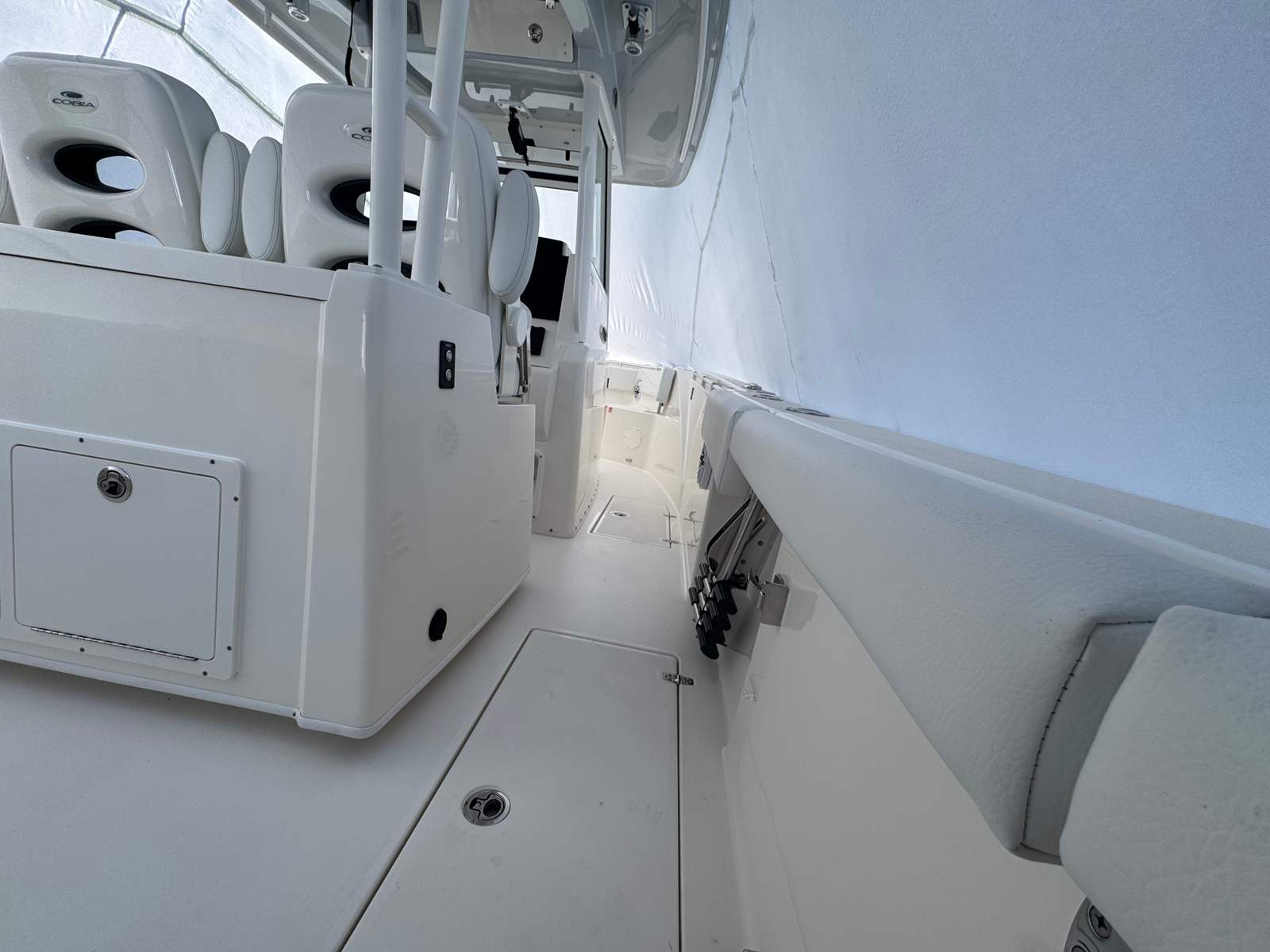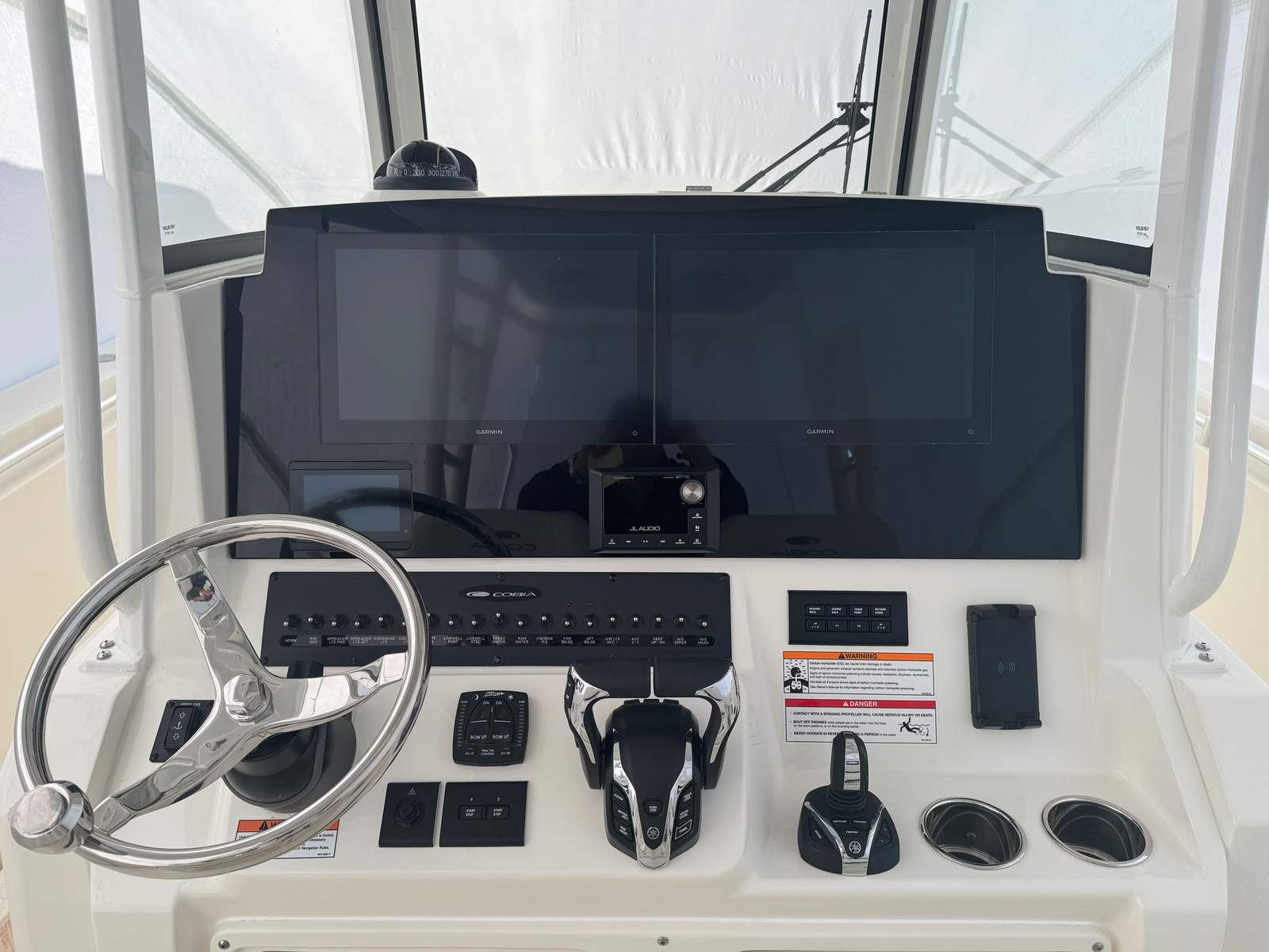 Owning the Cobia 320 CC means embracing a lifestyle of fun, relaxation, and adventure. The spacious center console layout is perfect for socializing, with plenty of room for friends and family to spread out and enjoy the ride. The plush, two-tone cushions and bow seating create inviting spaces for sunbathing, conversation, or simply taking in the views. The hardtop and sun shade ensure that everyone stays comfortable, no matter the weather.With 700 horsepower at your fingertips, you can explore new destinations, tow water toys, or chase the perfect fishing spot with ease. The advanced engine controls and digital steering make handling the boat a breeze, even for those new to boating. The faux teak decking not only looks great but also provides a safe, slip-resistant surface for kids and adults alike. Every detail of the Cobia 320 CC is designed to enhance your enjoyment on the water, making every outing memorable.