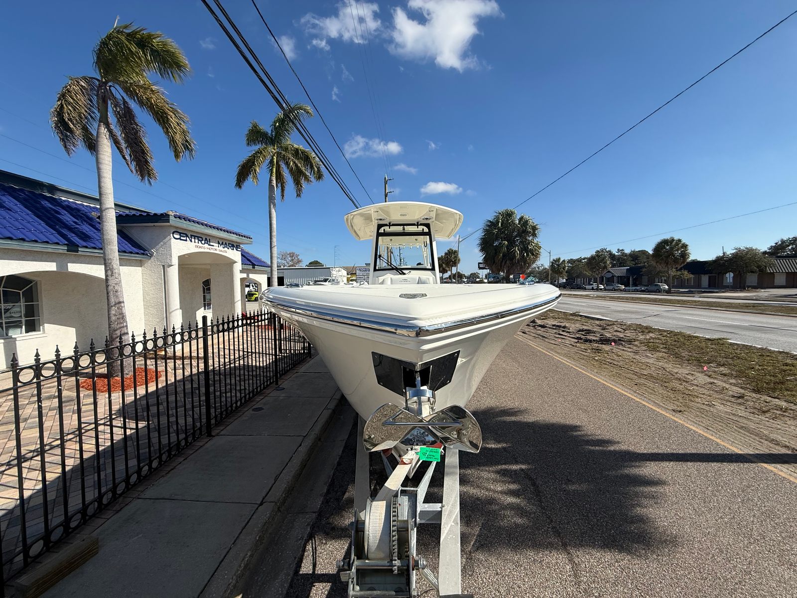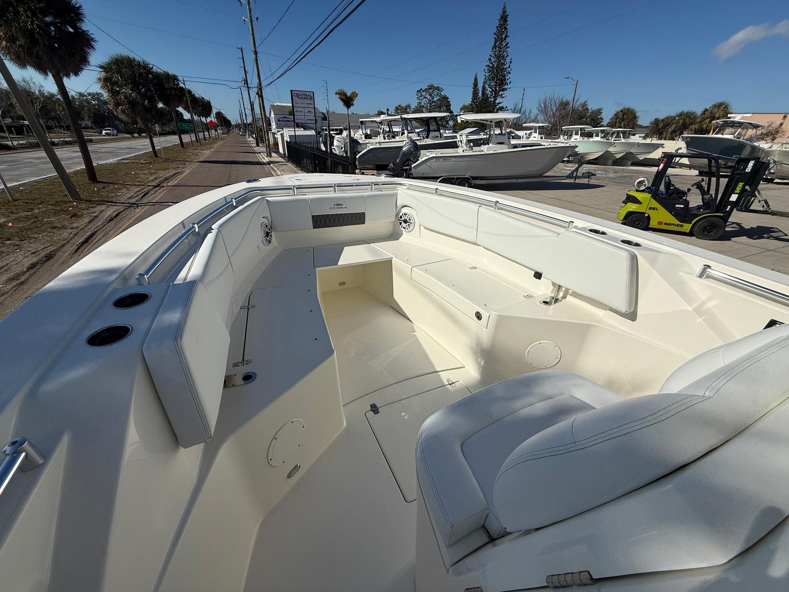 The 2025 Cobia 320 CC is a 32-foot Center Console boat that seamlessly blends style, functionality, and innovation. With its sleek lines and solid hull color pattern, this Cobia boat for sale stands out at the marina and on open water. The pure white console insert adds a touch of sophistication, while the overall design ensures both aesthetic appeal and practical use. As a brand-new model, the 320 CC offers the latest advancements in marine engineering and design, making it a top choice for those seeking a modern and reliable Center Console boat.