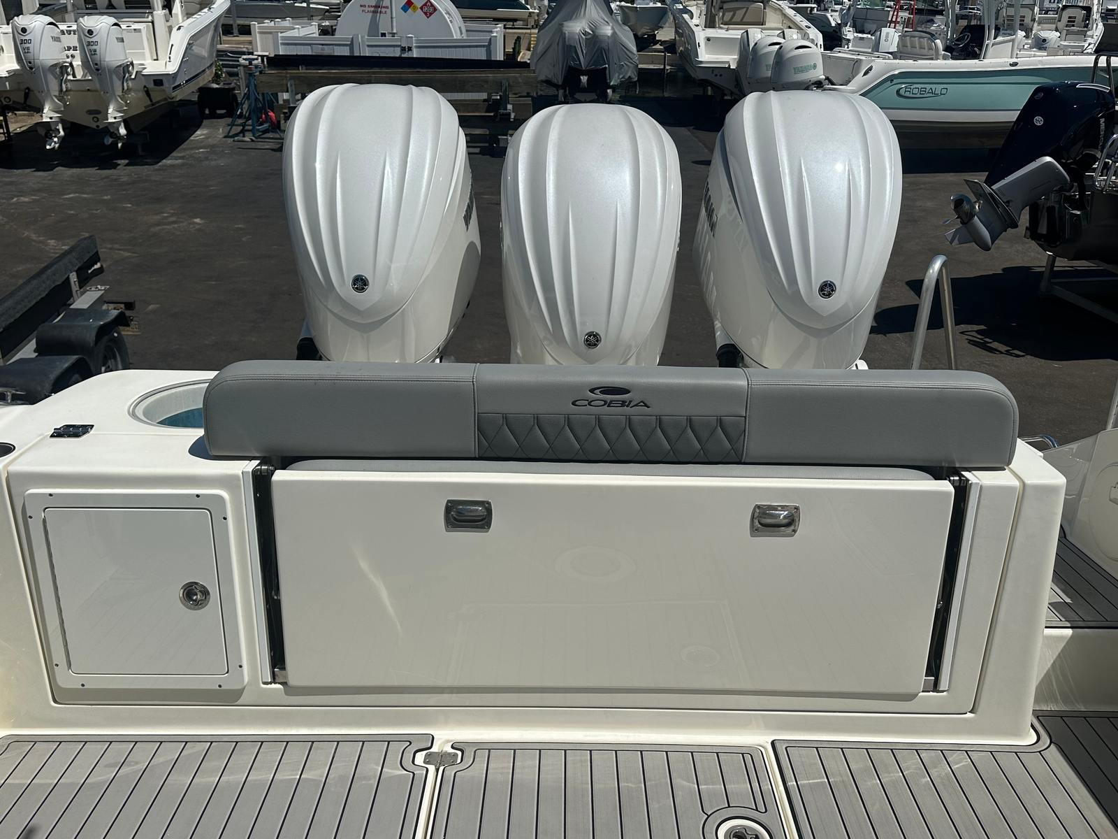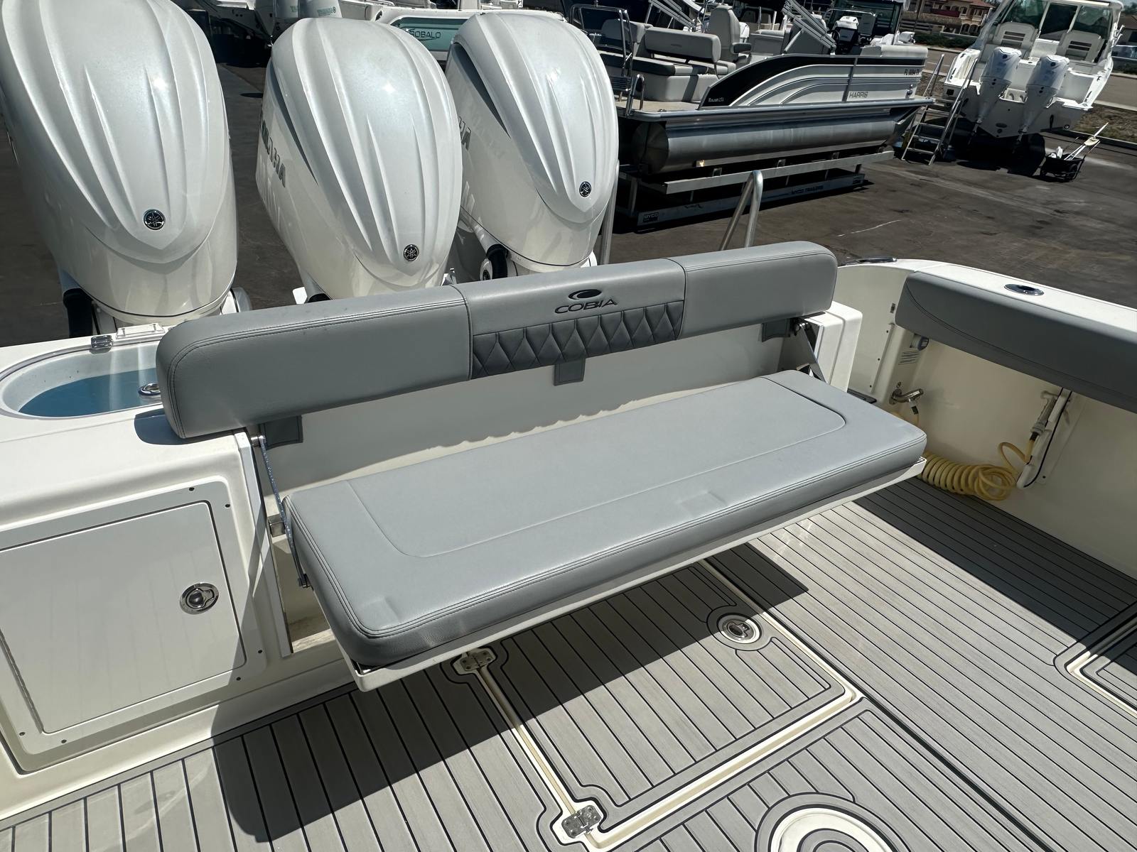 Practicality is at the heart of the Cobia 350 CC’s design. The boat’s generous storage options make it easy to stow away everything you need for a day on the water, from fishing gear to picnic supplies. The center console layout not only maximizes usable space but also makes docking and maneuvering a breeze, even in tight marinas or crowded docks.Fuel efficiency is another key advantage of this model, thanks to its advanced engineering and triple-engine configuration. You’ll spend less time worrying about refueling and more time enjoying your favorite activities on the water. The durable construction and low engine hours mean that maintenance is straightforward, allowing you to focus on making memories rather than dealing with unexpected repairs.