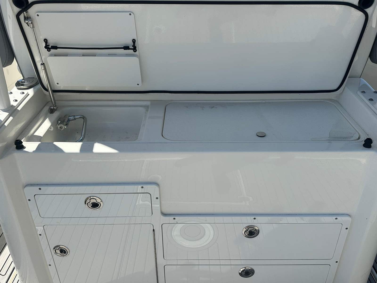 When it comes to performance, the Cobia 350 CC truly excels. Powered by three high-performance engines delivering a combined 900 horsepower, this center console boat is engineered for speed, agility, and reliability. With only 19 engine hours, the engines are practically new, promising years of dependable service and exhilarating rides. Whether you’re navigating open waters or cruising along the coastline, the triple-engine setup ensures quick acceleration, impressive top speeds, and smooth handling. The Cobia 350 CC’s advanced hull design further enhances its performance, providing stability and confidence in a variety of sea conditions.