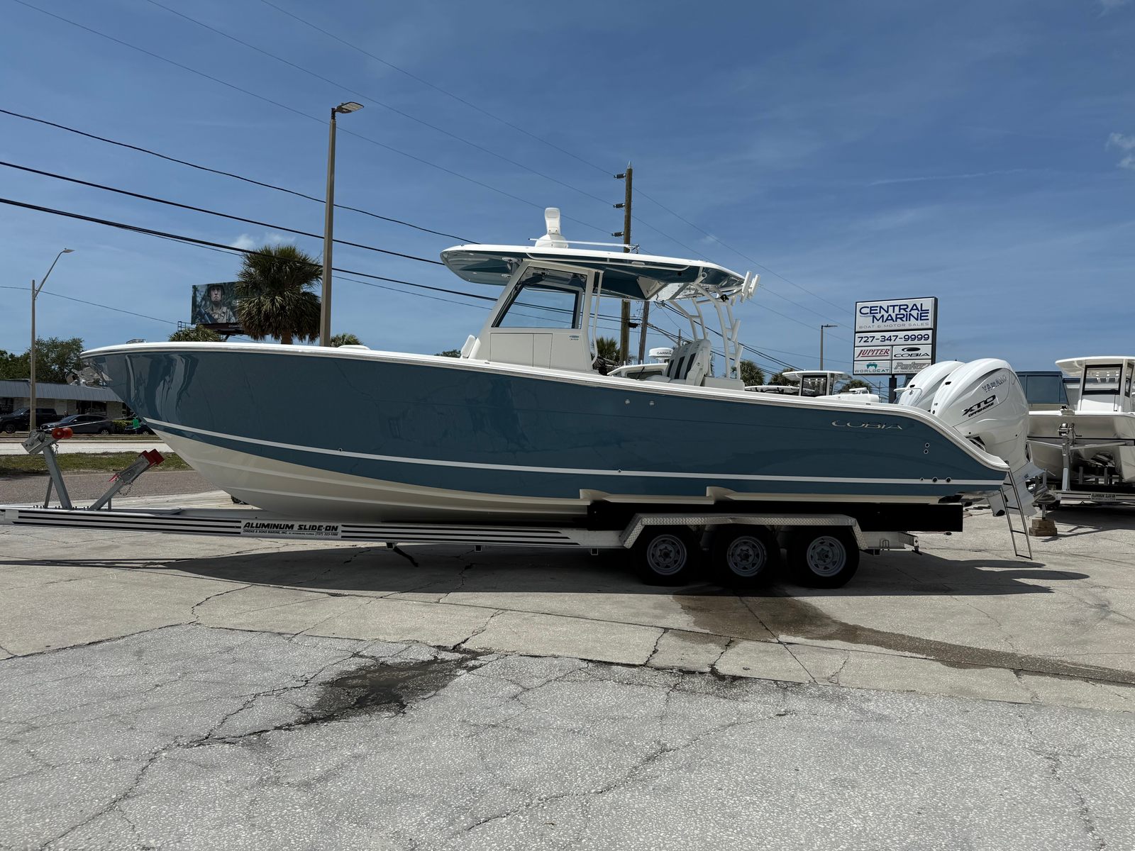In summary, the 2025 Cobia 350 CC is a standout center console boat for sale that combines cutting-edge technology, luxurious comfort, and exceptional performance. With its powerful twin Yamaha XF450NSA2 engines, advanced Helm Master EX system, and a host of premium features—including Bayside Blue hull color, 2-tone Platinum and White cushions, white rub rail with stainless steel insert, and forward-facing bow backrest—this boat is designed to deliver unforgettable experiences on the water. Whether you are searching for a Cobia boat for sale to elevate your fishing adventures, entertain guests, or simply enjoy the freedom of boating, the 350 CC is ready to exceed your expectations. Don’t miss the opportunity to make this incredible vessel yours—contact the dealer today to learn more and start your next adventure with the Cobia 350 CC.
