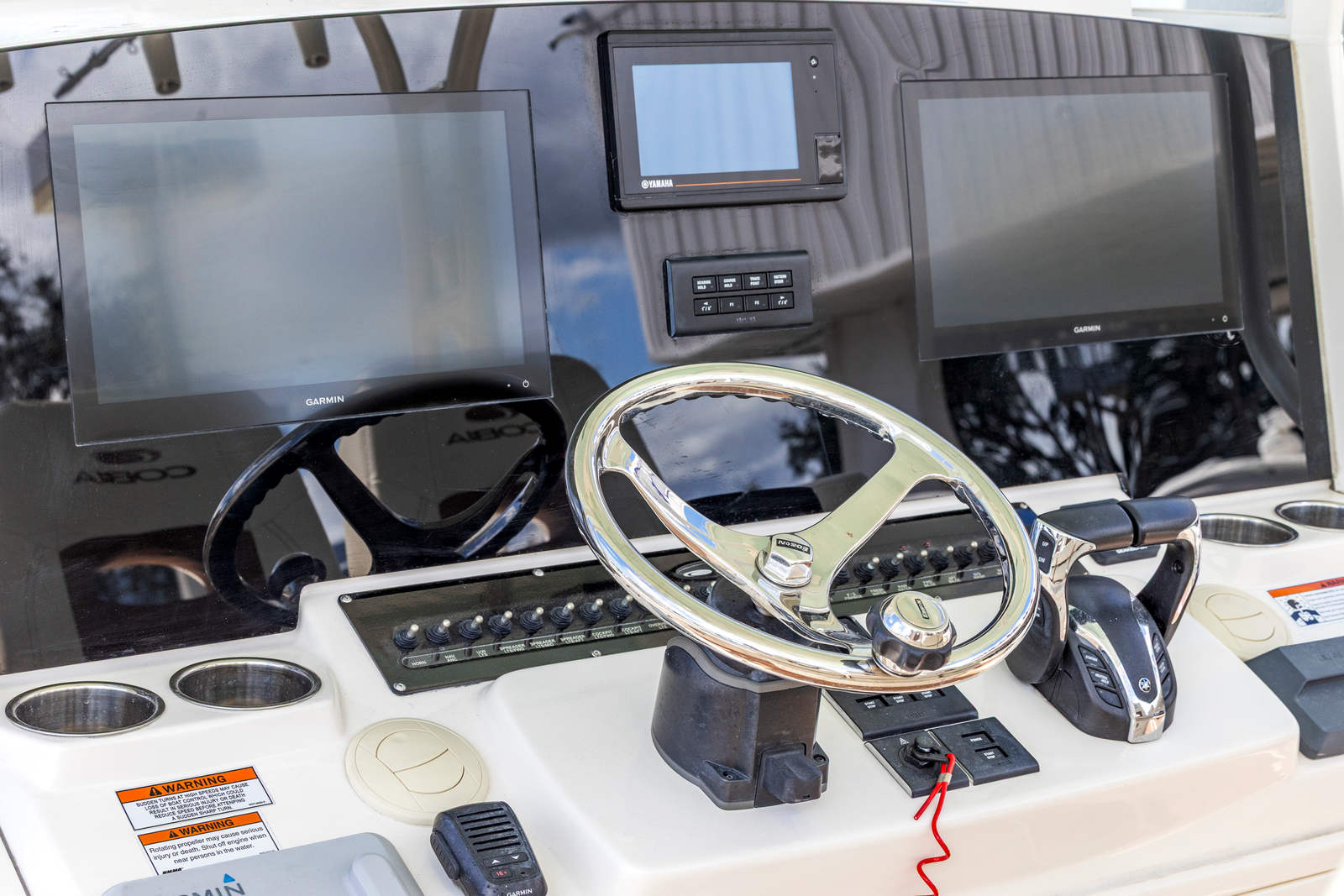 At the heart of the Cobia 350 CC’s appeal is its powerhouse performance. Equipped with three robust engines delivering a combined 900 horsepower, this center console boat is engineered for speed, agility, and reliability. The triple-engine setup ensures rapid acceleration, smooth cruising, and the ability to handle a variety of sea conditions with confidence. Whether you are heading offshore for a day of fishing or cruising along the coast with family and friends, the Cobia 350 CC offers exhilarating performance and responsive handling that will impress even the most discerning boaters. With only 166 engine hours, the engines are in excellent condition, providing peace of mind and reliability for your next adventure.