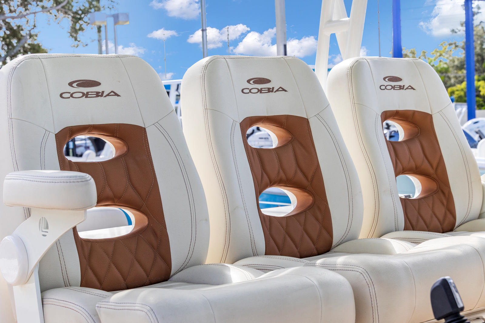 The Cobia 350 CC is as practical as it is enjoyable. Its generous storage compartments make it easy to bring along everything you need for a day on the water, from fishing gear to picnic supplies. The boat’s design makes docking and maneuvering straightforward, even for those new to boating. The triple-engine setup not only provides impressive speed but also enhances fuel efficiency when cruising at optimal speeds, allowing you to spend more time on the water and less time refueling.The durable construction and high-quality materials used in the Cobia 350 CC ensure that this boat is built to last, providing years of reliable service and enjoyment. Whether you are navigating busy marinas or anchoring in a quiet bay, the boat’s design makes every aspect of ownership easier and more enjoyable.