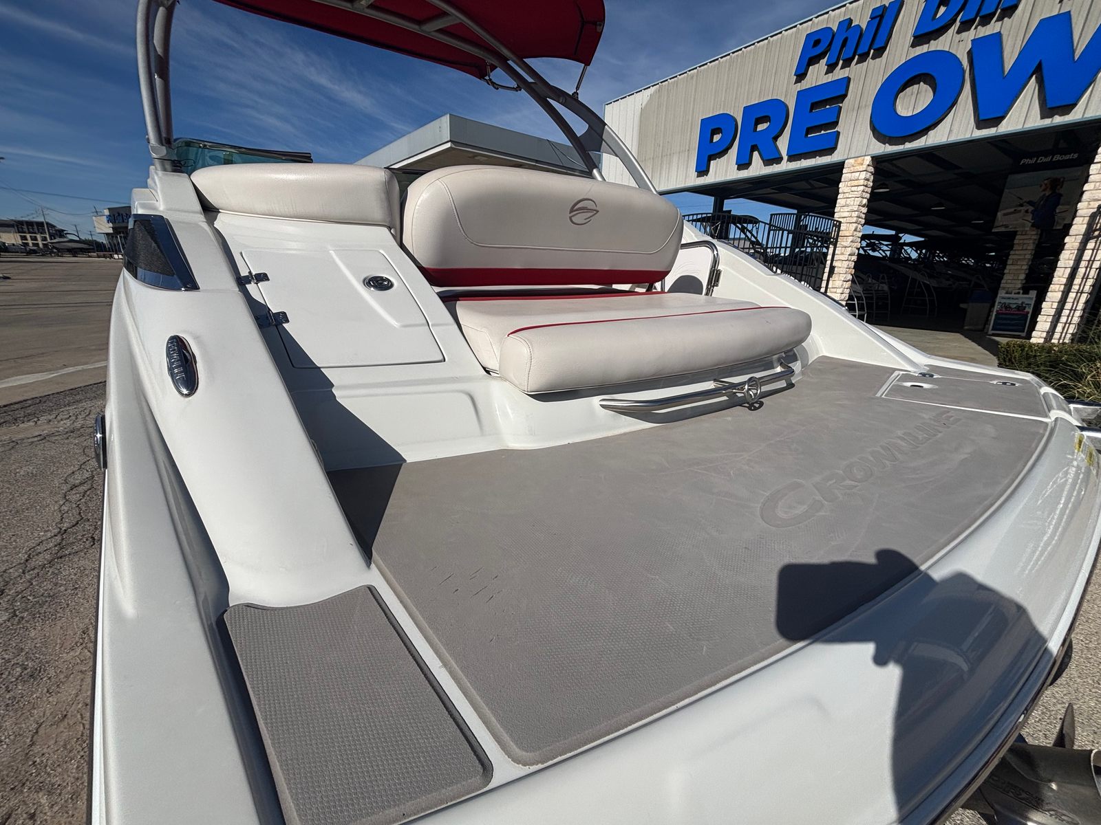 The Crownline E2 Bowrider is designed with comfort and convenience in mind. Its spacious deck layout allows for easy movement and plenty of seating, making it ideal for social gatherings and family outings. The boat’s ergonomic design ensures that every passenger enjoys a comfortable ride, while the stylish exterior turns heads wherever you go. With a length of 22.06 feet, the E2 offers generous space for lounging, sunbathing, and enjoying the scenery.Special features of the Crownline E2 include a single, powerful engine with 260 horsepower, ensuring reliable performance and thrilling acceleration. The boat’s low engine hours—just 150—mean it’s ready for many more adventures. The used condition of this Bowrider boat for sale reflects careful maintenance and attention to detail, providing peace of mind for prospective owners.
