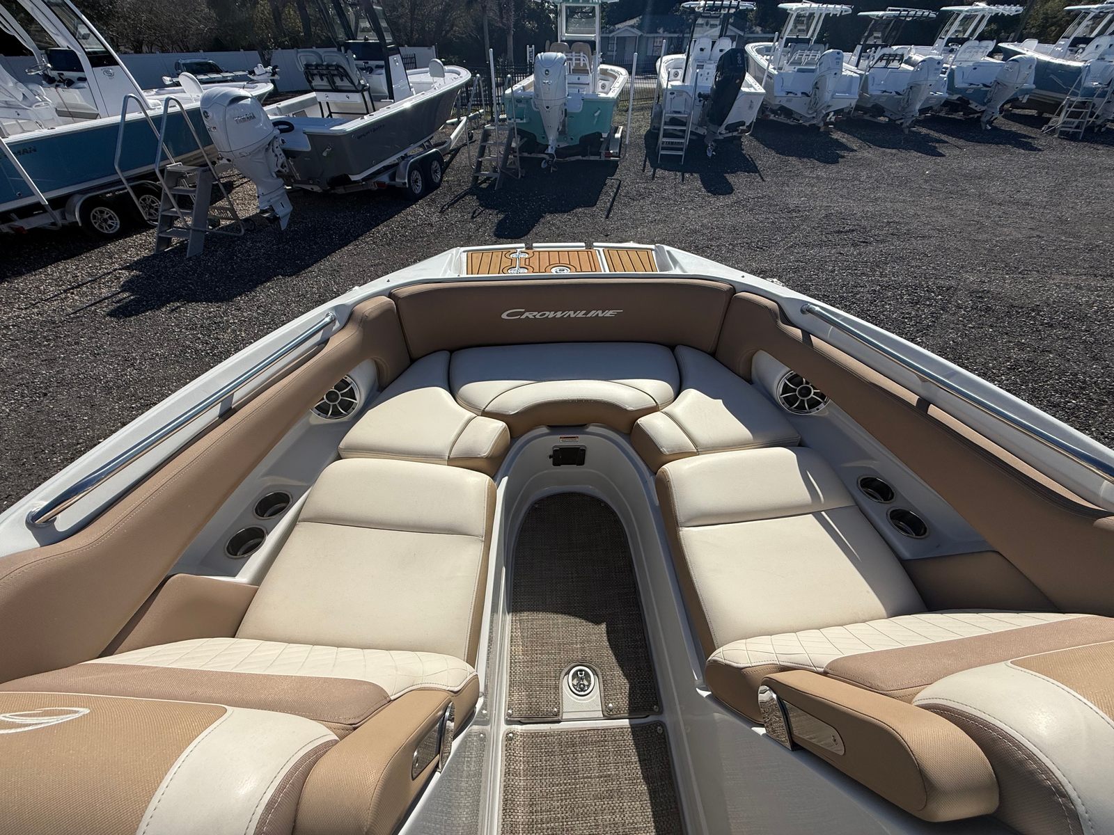 In summary, the 2021 Crownline E275XS is a standout pontoon boat for sale that combines luxury, performance, and versatility in one impressive package. With its 27-foot length, powerful 350-horsepower engine, and low engine hours, this used Crownline boat for sale offers exceptional value and reliability. The spacious layout, high-quality construction, and thoughtful features make it an ideal choice for anyone looking to elevate their boating adventures. Whether you are seeking fun-filled days with family, exciting watersports, or relaxing cruises, the E275XS delivers on all fronts. Don’t miss the opportunity to own this remarkable pontoon boat—contact your local dealer today to learn more and schedule a viewing.