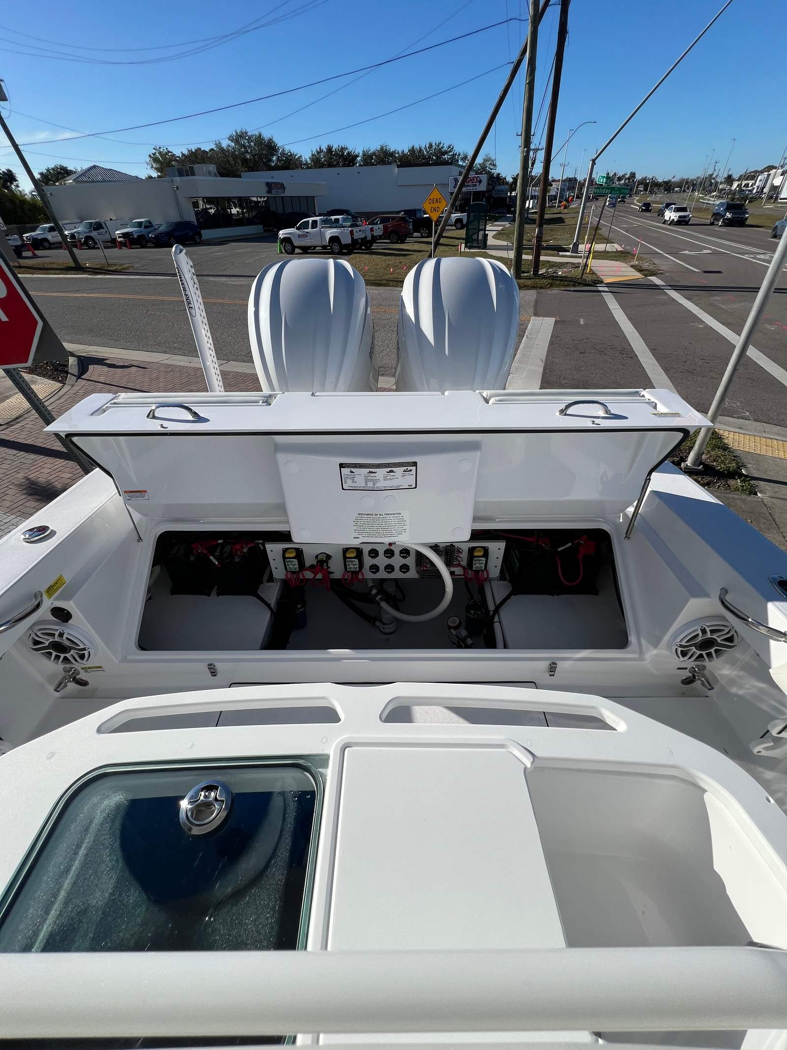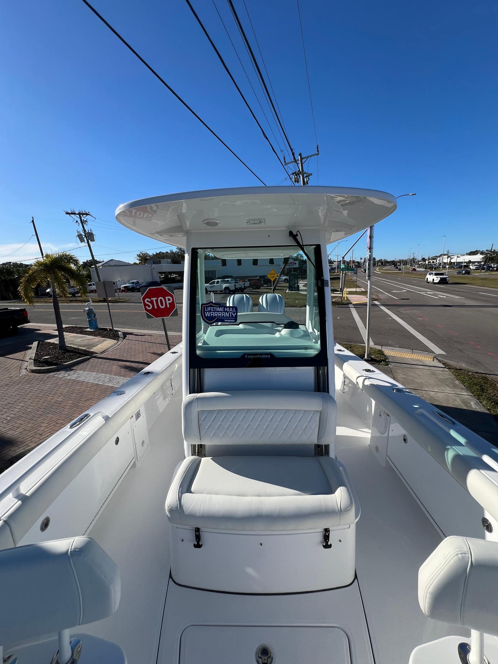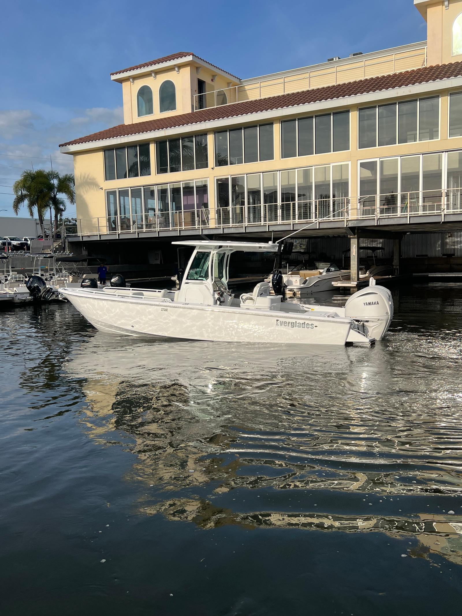 The Everglades 273 CC is as practical as it is fun. Its 29-foot length strikes the perfect balance between spaciousness and maneuverability, making docking and storage straightforward. The twin Yamaha engines offer not only impressive power but also efficiency, allowing you to cover more water with fewer stops at the fuel dock. The Power Pole 8' system makes anchoring in shallow water a breeze, perfect for fishing or relaxing in your favorite cove.The durable upholstery and gel coat hull are designed for easy cleaning and long-lasting beauty, reducing maintenance time and letting you spend more time enjoying your boat. The windlass system simplifies anchoring, so you can quickly secure your position and focus on the activities you love.