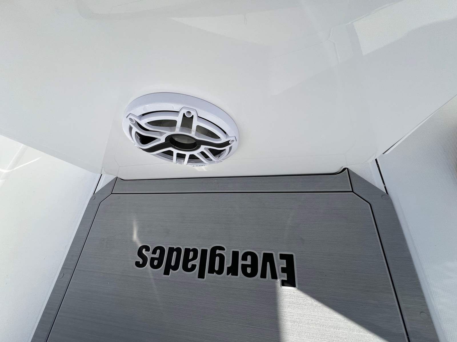 The Everglades 273 CC is loaded with premium features that elevate your boating experience. The solid white upholstery not only looks stunning but also offers easy maintenance and durability for years of enjoyment. The Power Pole 8' in white provides superior anchoring capability, making it easy to hold your position in shallow waters for fishing or relaxing. The canvas package, with its silver color, offers shade and protection, enhancing comfort during long days on the water.For those who appreciate high-quality sound, the premium audio system is a true highlight. With a stereo head, two 7.7" speakers, four 8.8" speakers, a 10" subwoofer, and an XDM 800 amplifier, your favorite music will sound crystal clear, whether you’re anchored at a sandbar or cruising the coastline. The anti-fatigue helm mat in storm gray ensures comfort during extended outings, reducing fatigue and keeping you focused on the fun.The Elite Package adds a layer of luxury and convenience, while the low-profile V700 windlass makes anchoring effortless and efficient. The gel white hull color is not only visually appealing but also easy to maintain, ensuring your boat looks pristine season after season.