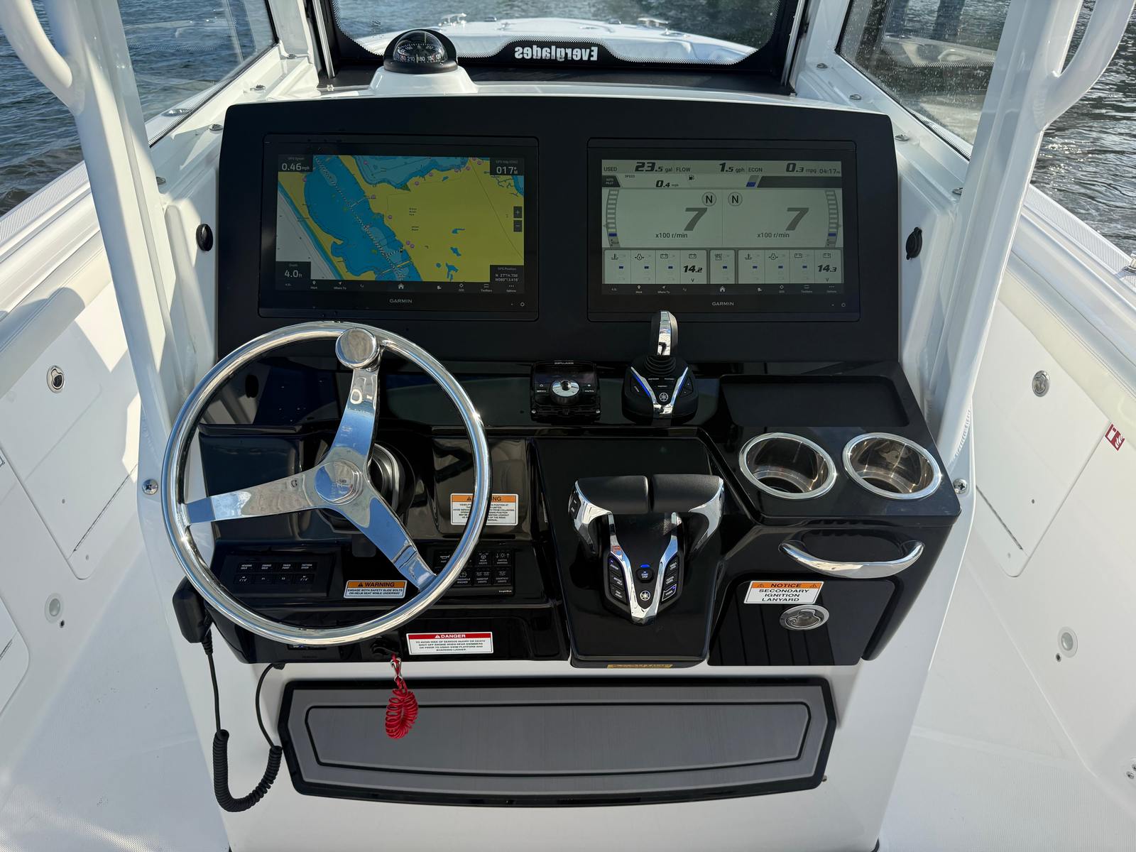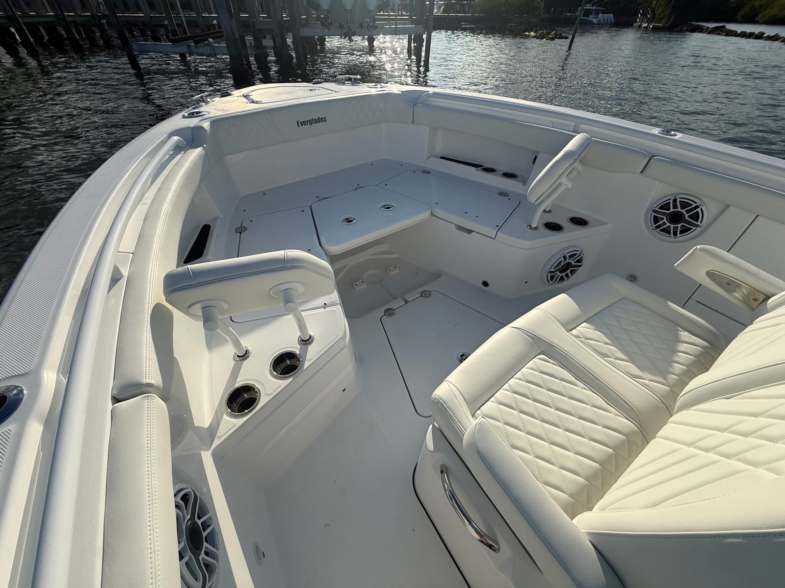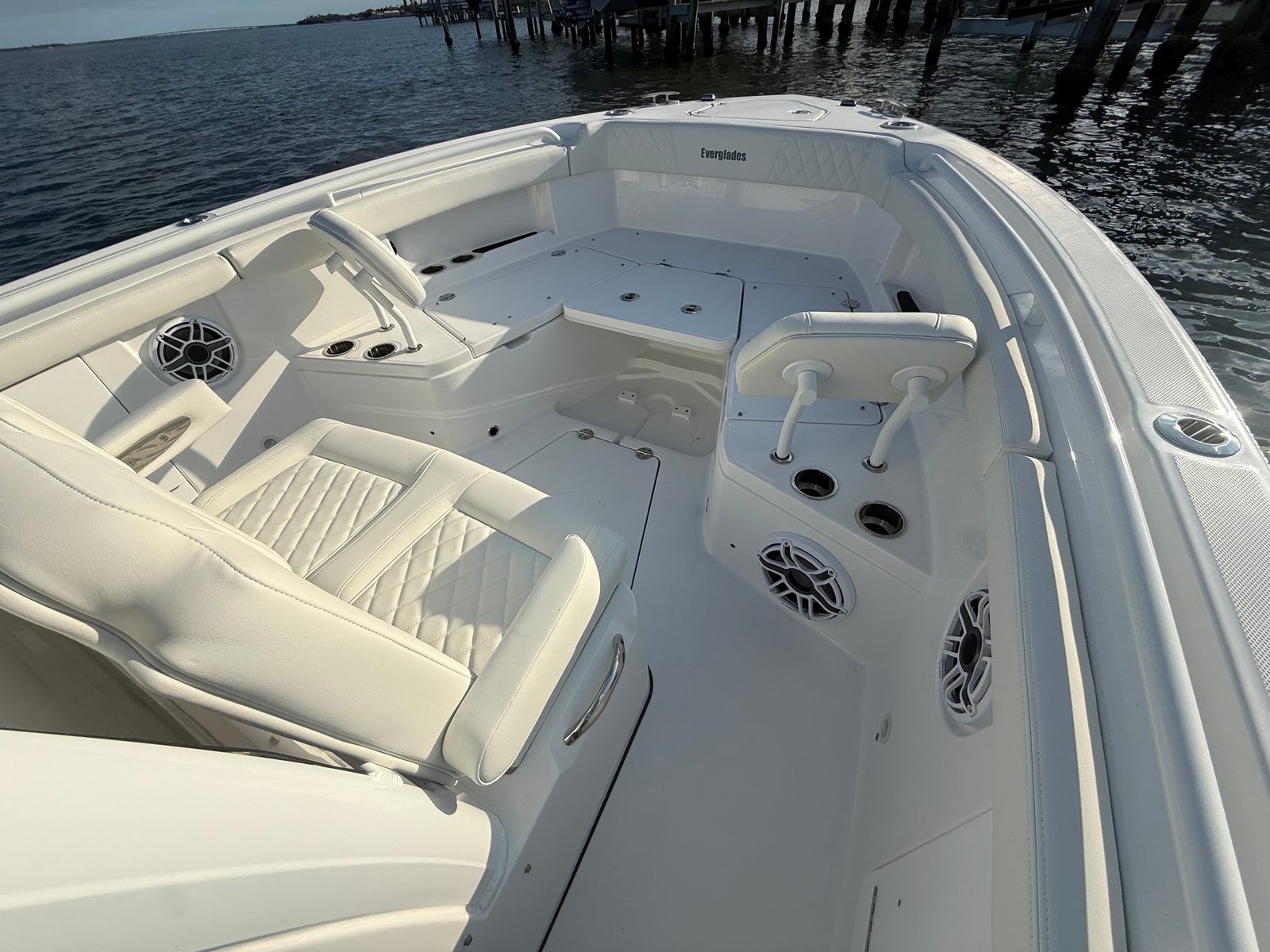 Owning the Everglades 285 CC means embracing a lifestyle of fun, relaxation, and social connection. The spacious deck layout encourages gatherings with family and friends, while the center console design offers unobstructed movement and 360-degree access for fishing, sunbathing, or simply enjoying the view. The premium audio system and ambient lighting set the stage for memorable days and nights on the water, turning every outing into a celebration.Comfort is paramount, with ergonomic seating and thoughtful amenities that cater to both relaxation and adventure. The dedicated storage for the reboarding ladder ensures the deck remains clutter-free, while the advanced trim tabs and joystick control make handling the boat intuitive and stress-free. Whether you’re an experienced captain or a newcomer to boating, the 285 CC’s user-friendly features make every trip enjoyable and worry-free.