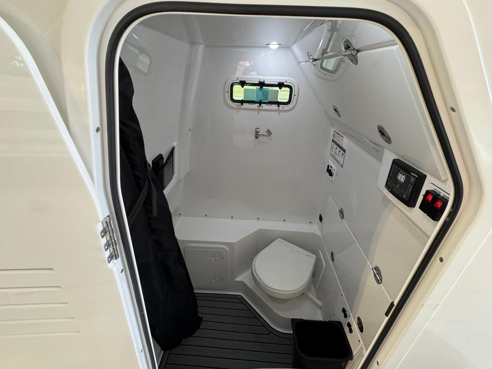 Step aboard the Everglades 285 CC and discover a host of special features designed to enhance your boating experience. The Mediterranean Bow Shade provides essential protection from the sun, while the Flint Gray accent upholstery adds a touch of style and comfort. The Lumitec Light Bar – an 18" low-profile spotlight – ensures excellent visibility during early morning departures or evening returns. For easy reboarding after swimming or diving, the ladder for side access reboarding door comes with dedicated storage, keeping the deck uncluttered and safe.Maintenance is simplified with the engine flushing system, allowing for quick and efficient care of your twin Yamaha engines. Anglers will appreciate the comprehensive fishing package, which includes a storage unit located under the helm seat on the port side (storage excluded with SK1 option), a second live well with pump (replacing the aft port cooler box), and rod/cup holders at the helm seat. The Teak Accent Package elevates the boat’s aesthetics with bow storage trim, bow ladder-backrests, helm dash, and a dive door gate, creating a refined and inviting atmosphere.