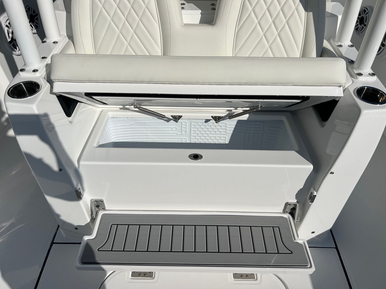 The 2025 Everglades 335 CC is loaded with premium features designed to maximize comfort, convenience, and enjoyment on the water. The Gel-White finish and Solid White upholstery create a clean, modern aesthetic that is both stylish and easy to maintain. The Canvas Package adds versatility and protection, allowing you to adapt to changing weather conditions with ease. For those who appreciate luxury, the chiller plate for the mezzanine seat ensures your refreshments stay cool, even on the hottest days.The engine flushing system simplifies maintenance, helping to extend the life of your twin Yamaha F450 engines. Structural support for the Seakeeper 2 provides the foundation for advanced stabilization, enhancing comfort during rough conditions. Underwater RGBW lights, transom-mounted, add a dramatic touch to evening cruises, creating an inviting ambiance for entertaining or relaxing after sunset. The Prime Package further elevates the boating experience, offering a suite of enhancements that cater to both avid anglers and leisure seekers alike.