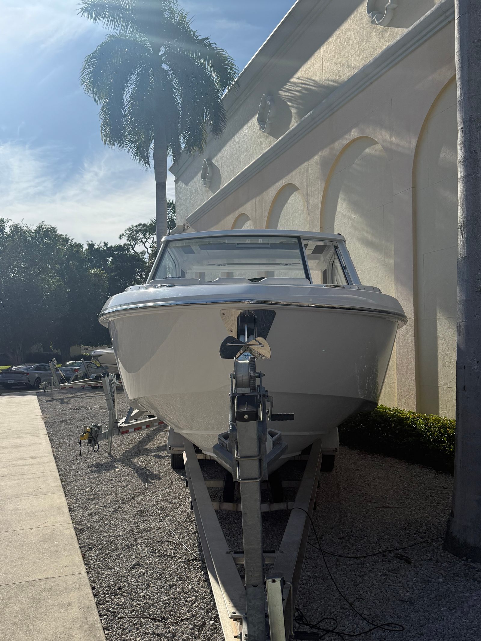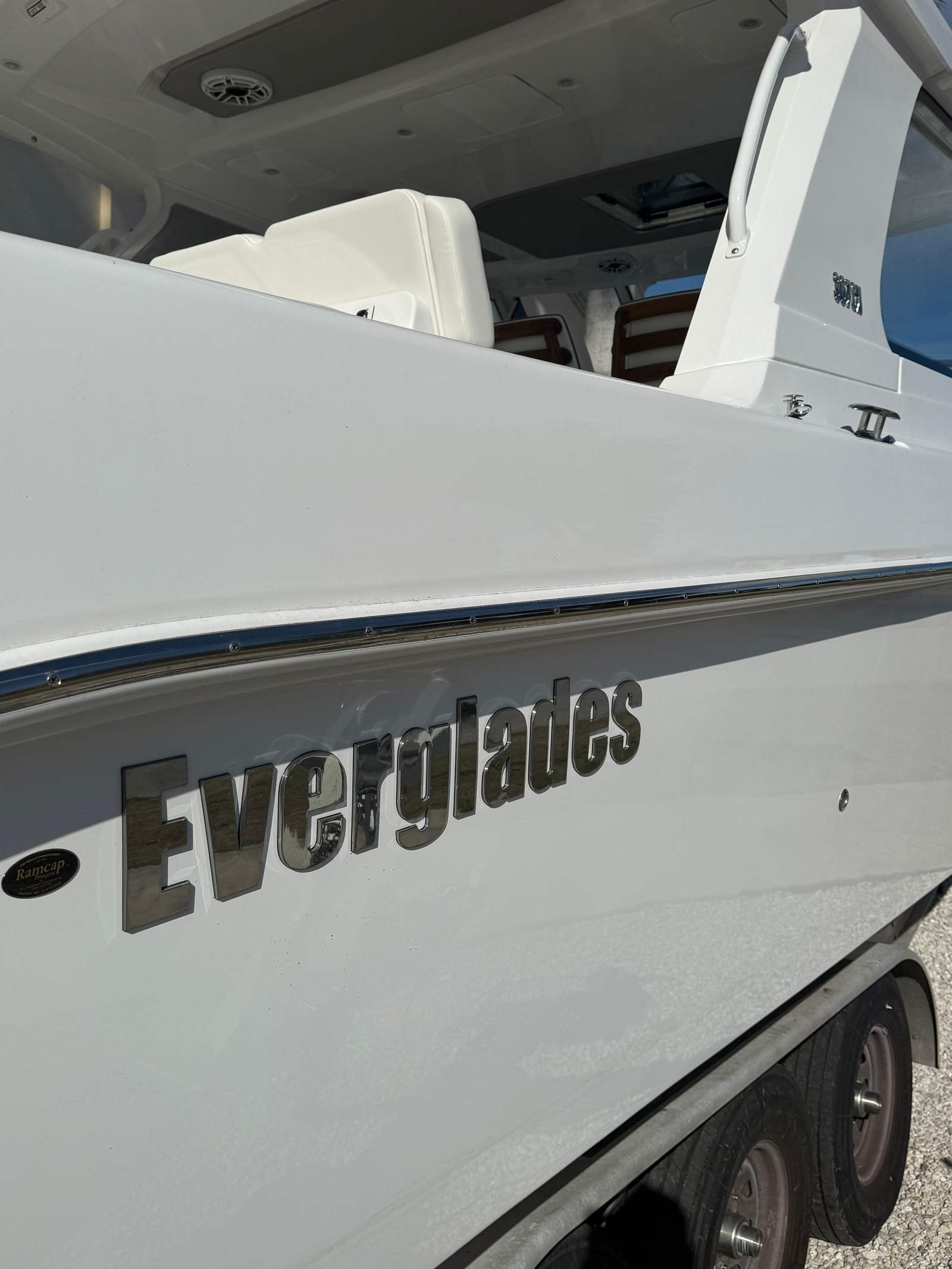 This Everglades boat for sale is packed with premium features designed to enhance your time on board. The hull’s white gel finish not only looks stunning but also offers durability and easy maintenance. The Electrical Convenience Package ensures that all your electronic needs are met, providing reliable power for your adventures. The Sanibel upholstery material package adds a touch of elegance and comfort to the seating areas, creating a welcoming environment for you and your guests.For those who value privacy and protection from the elements, the canvas windshield privacy cover and comprehensive canvas package in a sleek silver color offer both style and functionality. The fishing package makes this cruiser ideal for anglers, providing the tools and features needed for a successful day on the water. An electrically actuated anchor light adds a modern touch, making anchoring at dusk or dawn both safe and convenient.