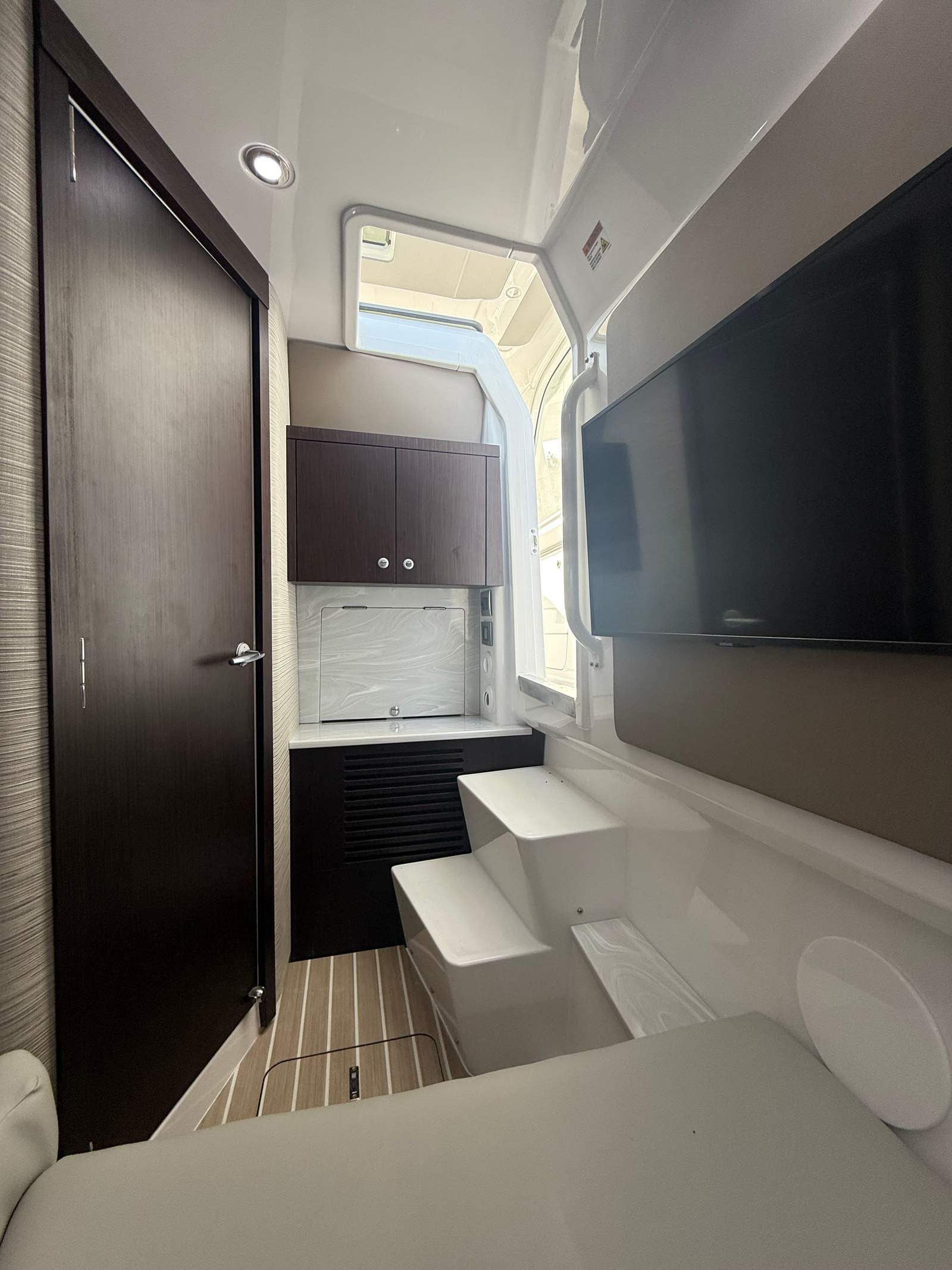 The Everglades 367 CX is as practical as it is luxurious. Its generous length offers plenty of storage space for gear, supplies, and personal items, keeping the deck clutter-free and organized. The cruiser’s design makes docking a breeze, especially with the joystick control system, which allows for precise movements in tight spaces. Fuel efficiency is enhanced by the modern Mercury engines, so you can spend more time on the water and less time refueling.The electrical convenience package ensures that all your devices and appliances have the power they need, whether you are hosting a party or preparing for a fishing trip. The canvas packages provide protection from sun and rain, extending your boating season and keeping everyone comfortable regardless of the weather. The fishing package adds versatility, making this cruiser an excellent choice for those who want to combine leisure cruising with serious angling.