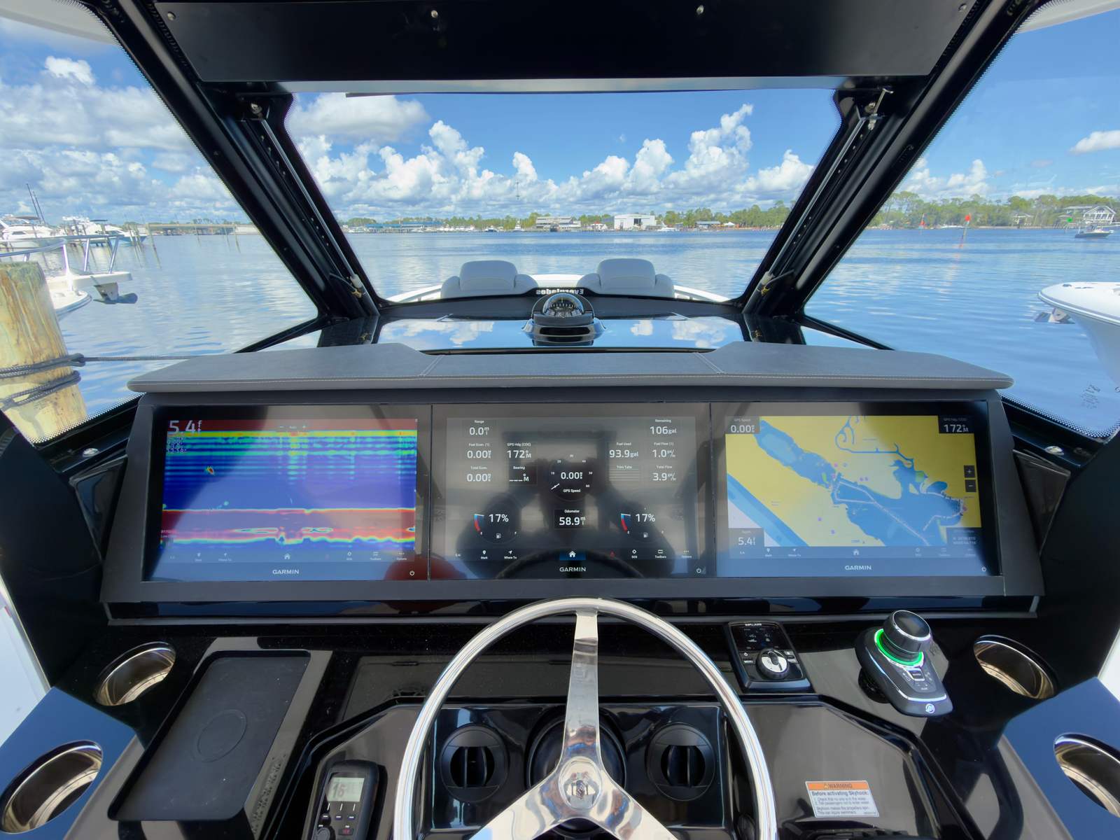 - Premium Package - Garmin VHF 315, AIS 800 Transceiver, Triple GPSMAP 9219xsv Chart Plotters, B175 High and Low Chirp Transducers, Fantom 54 Radar
