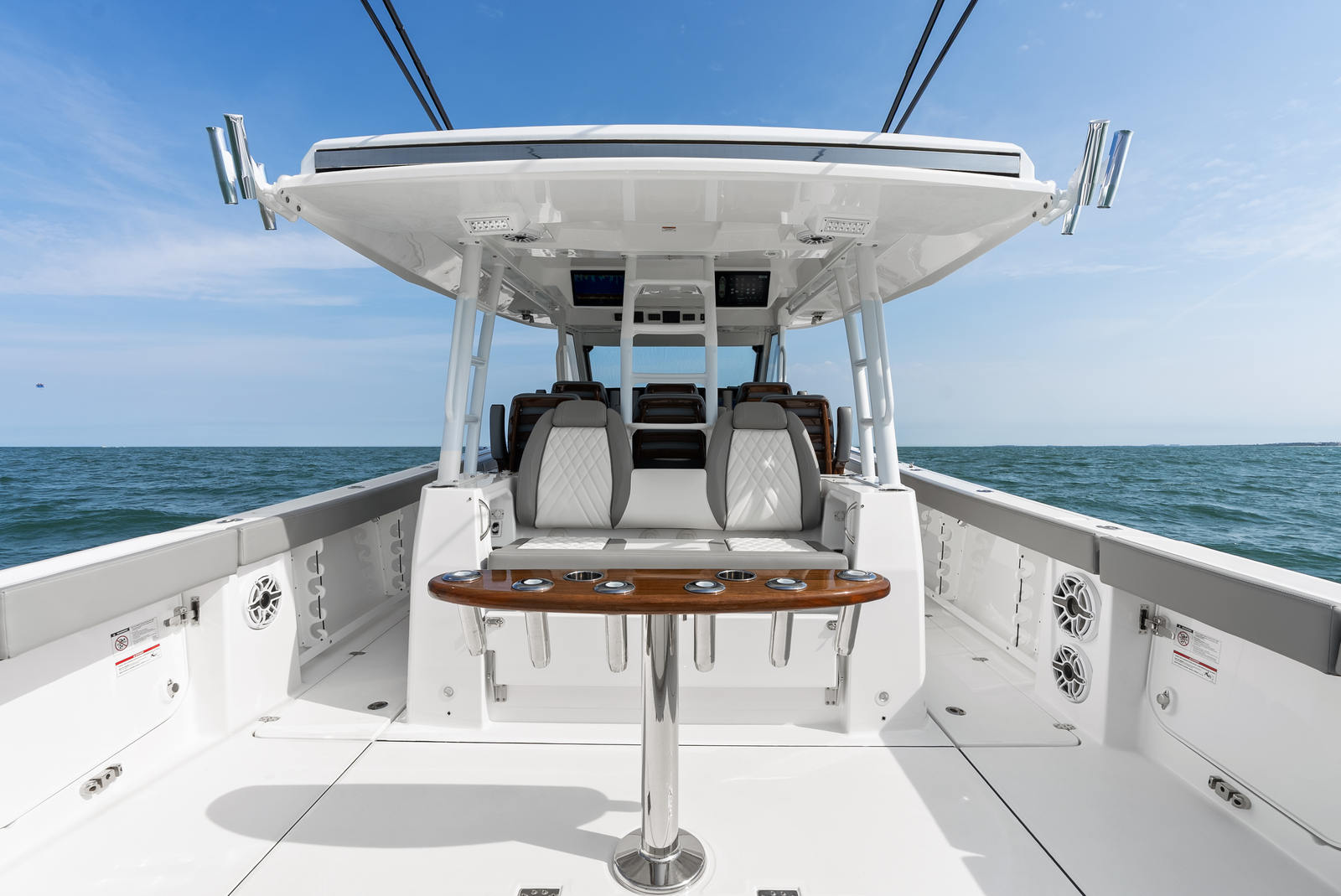 - Teak Accents at fwd lounge, fwd bow seats, and dive doors