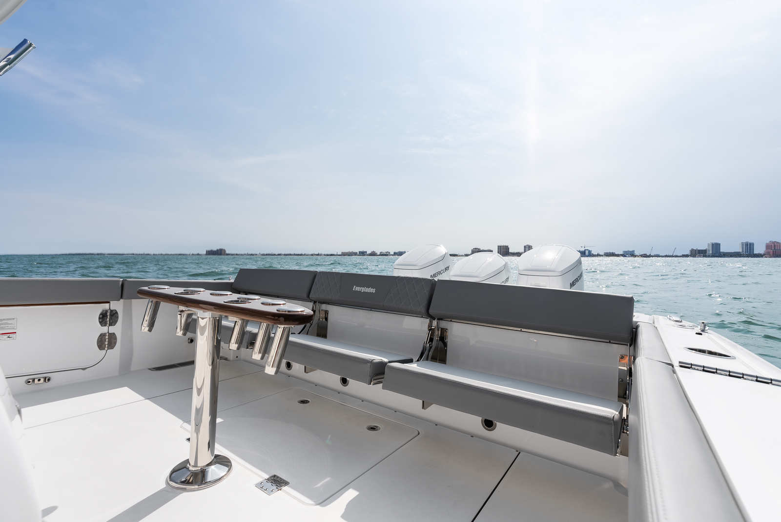 The Everglades 455 CC is designed with practicality in mind, making ownership as enjoyable as it is effortless. The ample storage throughout the boat keeps gear, supplies, and personal items organized and easily accessible. The intuitive layout and advanced docking features simplify maneuvering in tight spaces, while the efficient triple-engine setup balances power with fuel economy for longer journeys. The durable materials and high-quality construction ensure that your investment is protected against the elements, season after season. Whether you are loading up for a fishing tournament, preparing for a family day on the water, or planning an extended cruise, the 455 CC adapts to your needs with ease.
