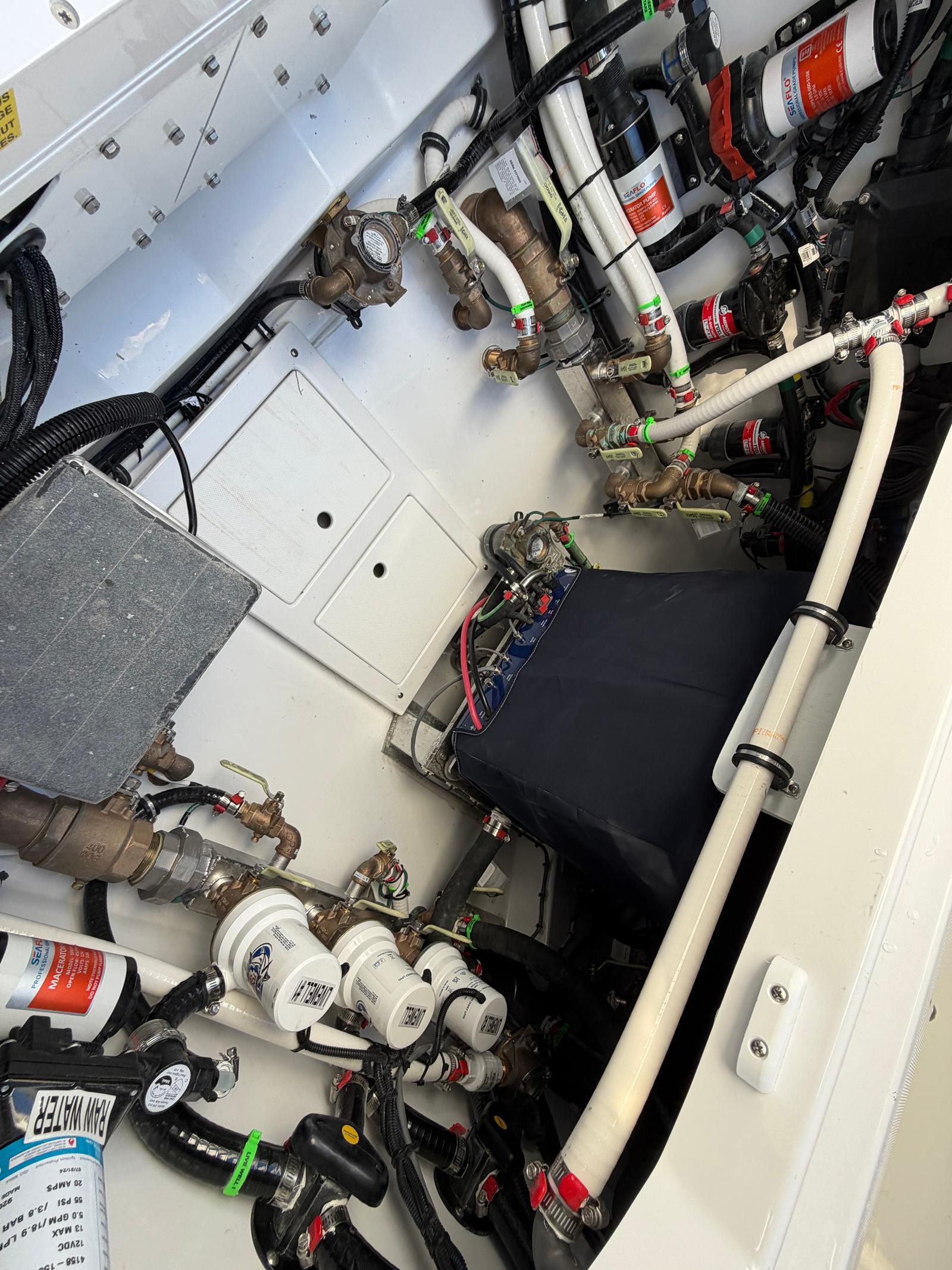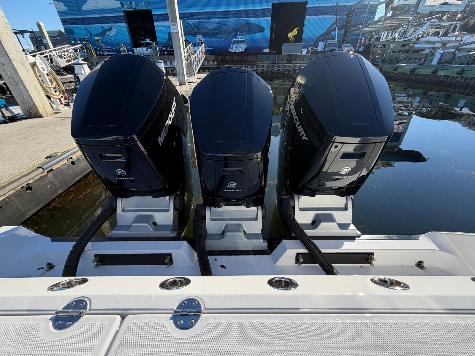 Powering the Everglades 455 CC are three Mercury 600 V12 Verado engines, delivering a combined 1800 horsepower. This triple-engine setup provides exhilarating speed, smooth acceleration, and reliable performance for all your boating adventures. The advanced Mercury engines are renowned for their efficiency, quiet operation, and robust power, making them ideal for both offshore excursions and leisurely cruises. With joystick and autopilot controls, maneuvering this center console boat is effortless, whether you’re docking in tight spaces or navigating open waters. The full upper station, equipped with autopilot and joystick, offers superior visibility and control, ensuring a seamless and enjoyable piloting experience.