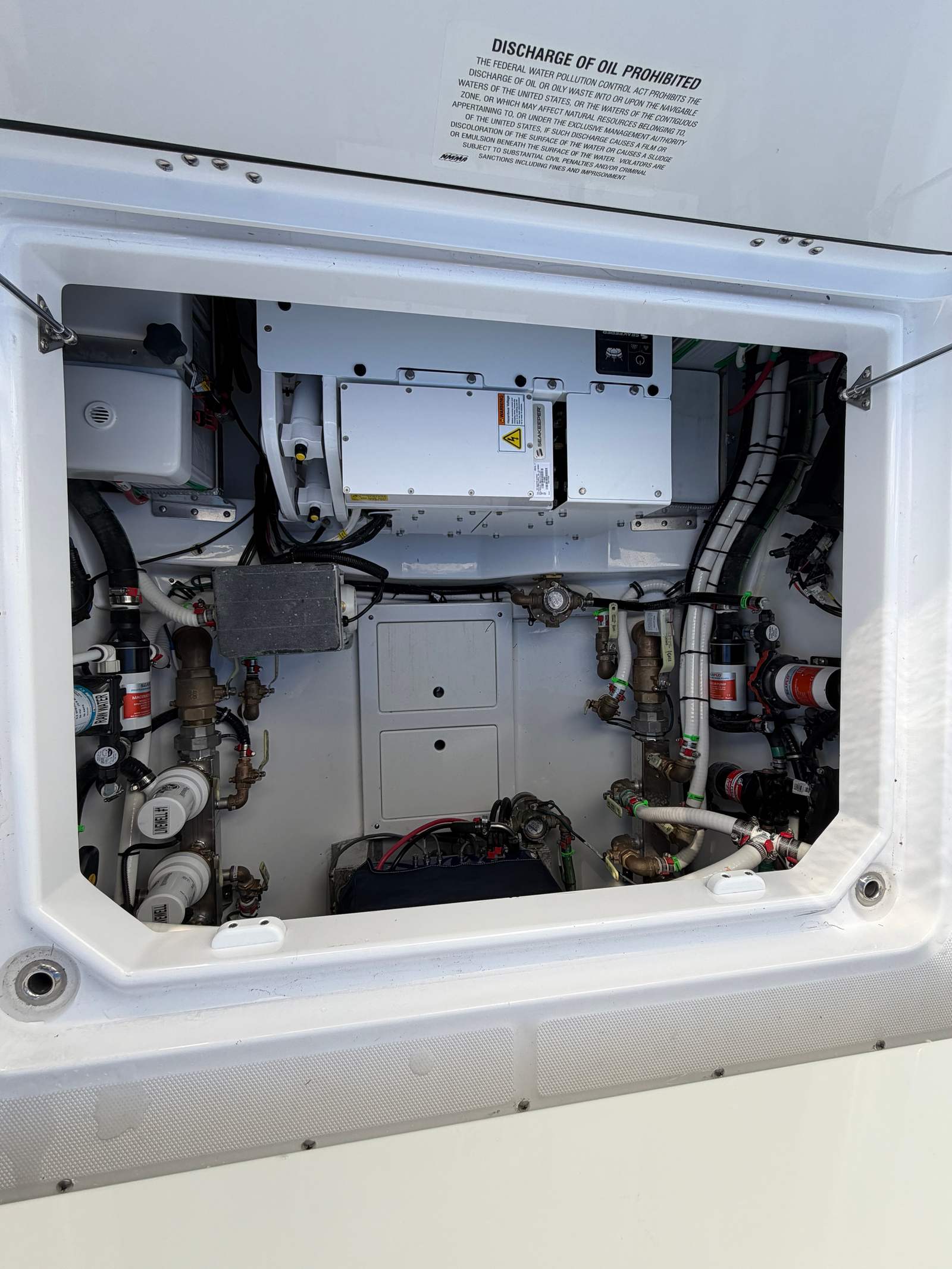 The Everglades 455 CC is designed with practicality in mind, making ownership both enjoyable and convenient. The joystick and autopilot systems simplify docking and navigation, reducing stress and allowing you to focus on the fun. The ample storage options, including the glove box and covered seating areas, keep your gear organized and protected from the elements. The durable canvas package helps maintain the boat’s pristine condition, while the high-quality upholstery and cabinetry ensure lasting beauty and comfort.Fuel efficiency is enhanced by the advanced Mercury engines, allowing you to spend more time on the water and less time refueling. The robust construction and premium materials provide peace of mind, knowing that your investment is built to withstand the rigors of marine environments. Whether you’re planning a weekend getaway or a spontaneous day trip, the Everglades 455 CC is ready to accommodate your needs with style and reliability.