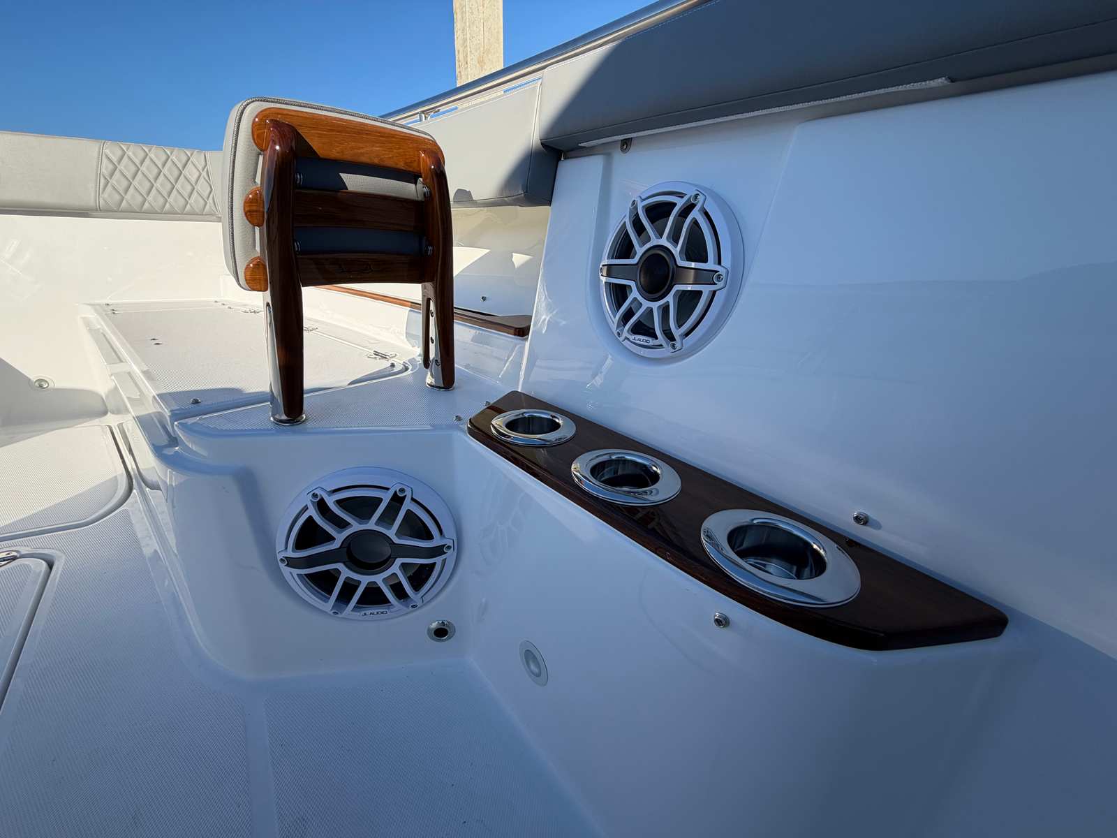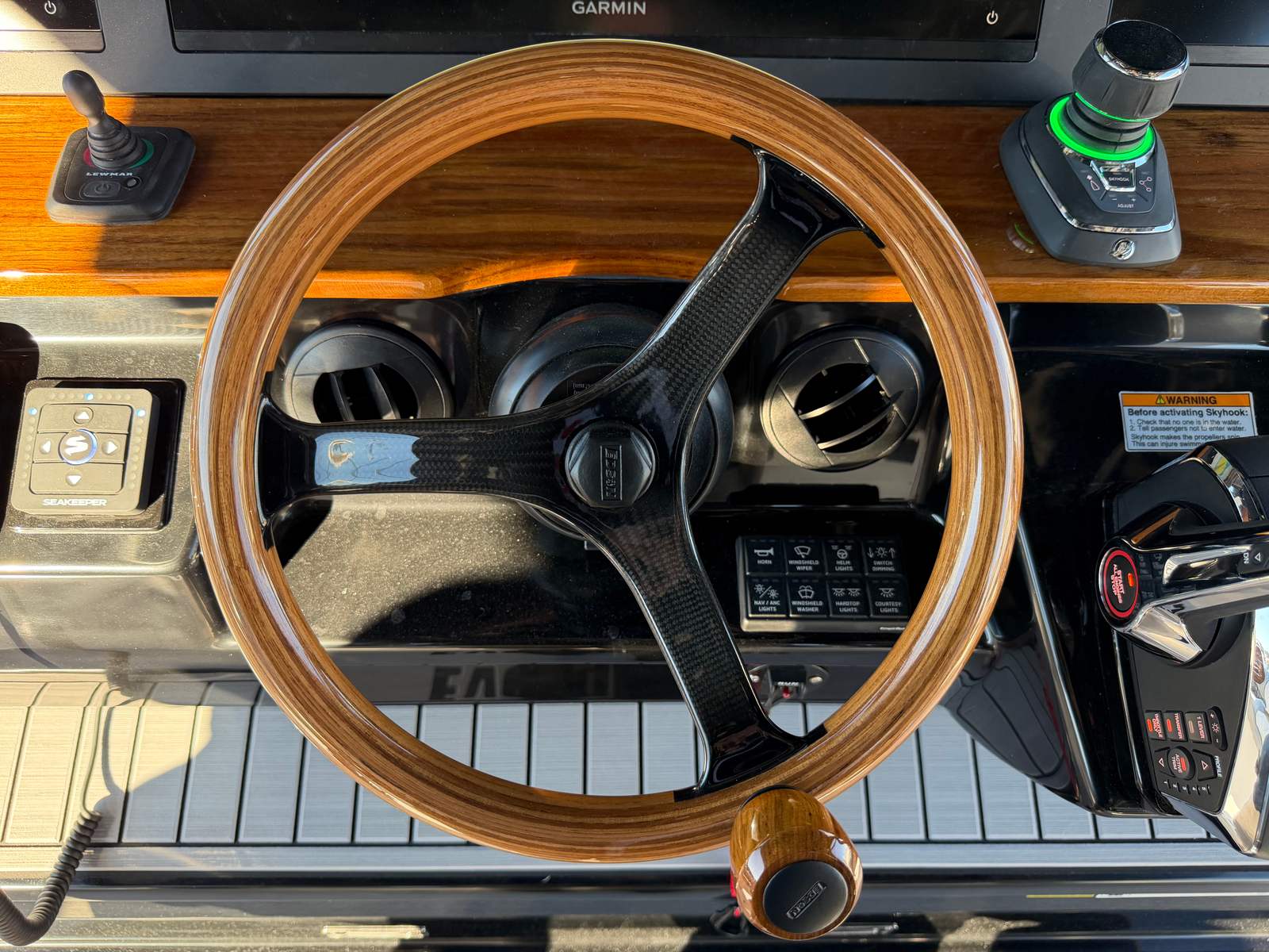 - Full Upper Station - w/ auto pilot and joystick, sun top, 2 drink holders, folding helm seat bolsters, stainless steel grab rail, glove box, Garmin GHS 11 handset, Garmin 8616 additional screen