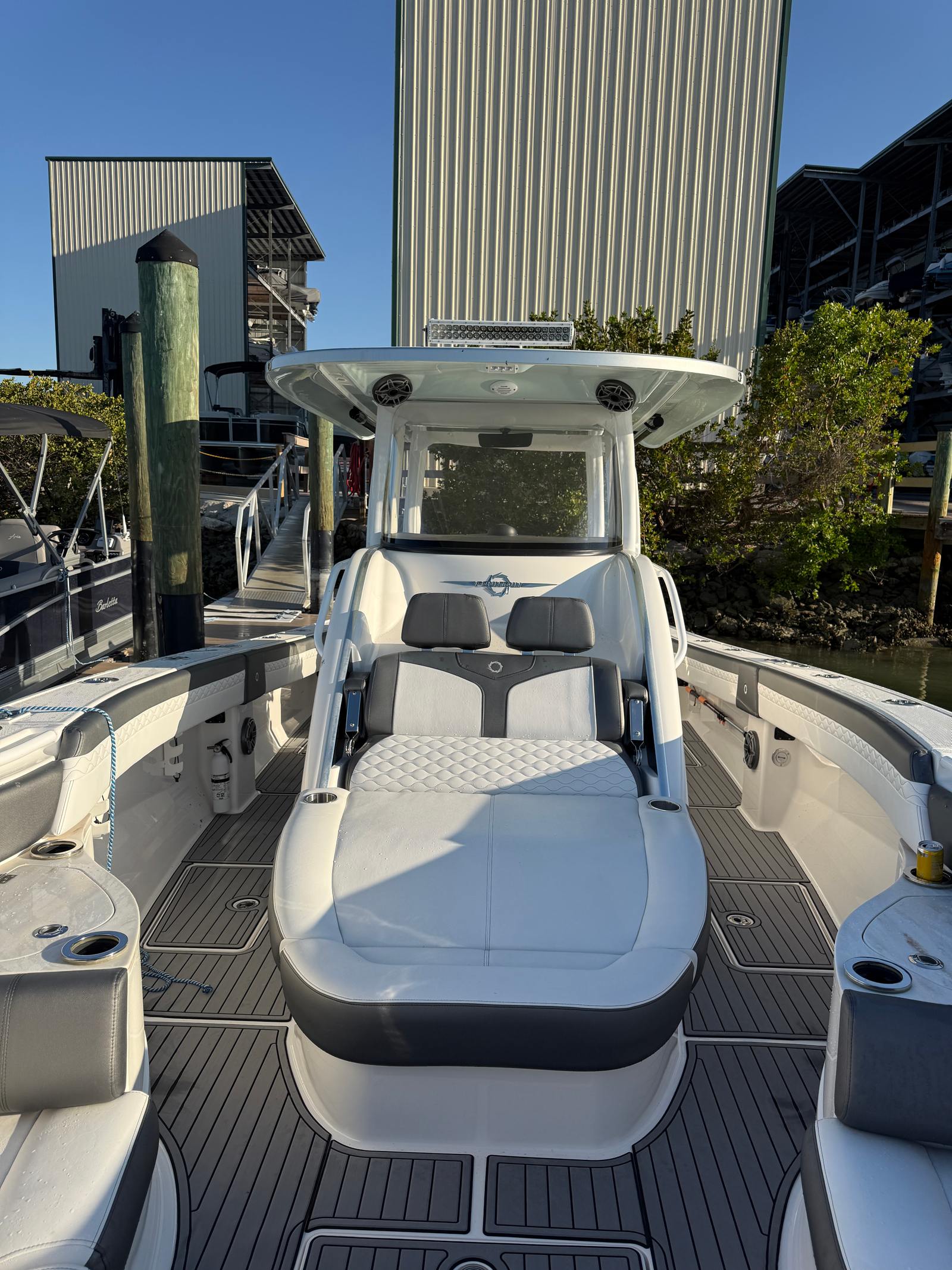 Practicality meets luxury in the Fountain 39 NX. The boat's intelligent design includes ample storage for fishing gear, water toys, and personal belongings, making it easy to keep the deck clutter-free and organized. Docking and maneuvering are simplified by the responsive controls and triple-engine configuration, allowing you to navigate tight spaces with ease. The efficient engine setup also contributes to better fuel economy, so you can spend more time on the water and less time at the fuel dock.The Fountain 39 NX is built for convenience, with features that enhance the overall ownership experience. From the easy-to-access helm station to the spacious walkways and comfortable seating, every detail is designed to make your time on the water as enjoyable and stress-free as possible. Whether you are heading out for a quick sunset cruise or planning an all-day adventure, this center console boat adapts to your needs with style and ease.