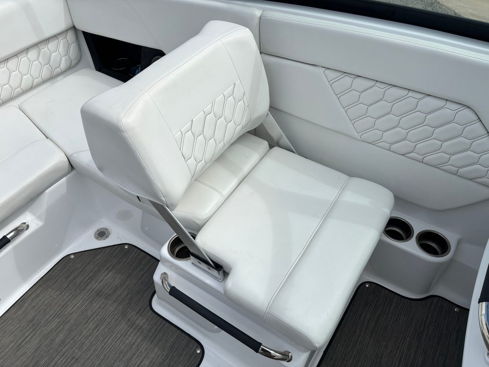 The Four Winns H1 is as practical as it is fun. Its manageable 21.01-foot length makes docking and trailering straightforward, so you can easily explore new waterways or transport the boat to your favorite destinations. The efficient single-engine setup offers a balance of power and fuel economy, helping you maximize your time on the water without frequent stops at the fuel dock.Storage solutions throughout the boat keep your gear organized and out of the way, making it easy to bring along everything you need for a day of fun. The open layout and thoughtful design ensure that every inch of space is used efficiently, providing plenty of room for coolers, water toys, and personal items.