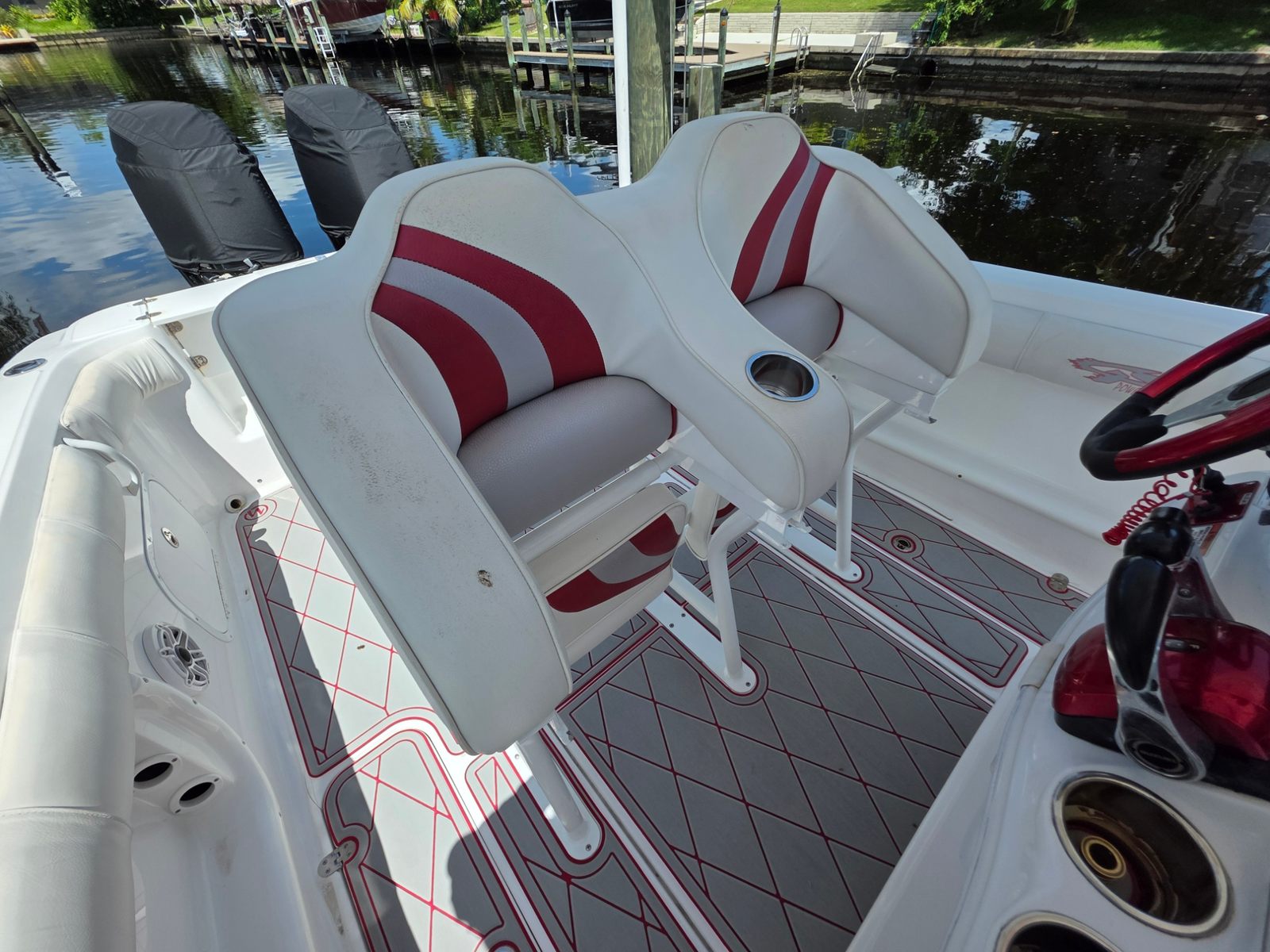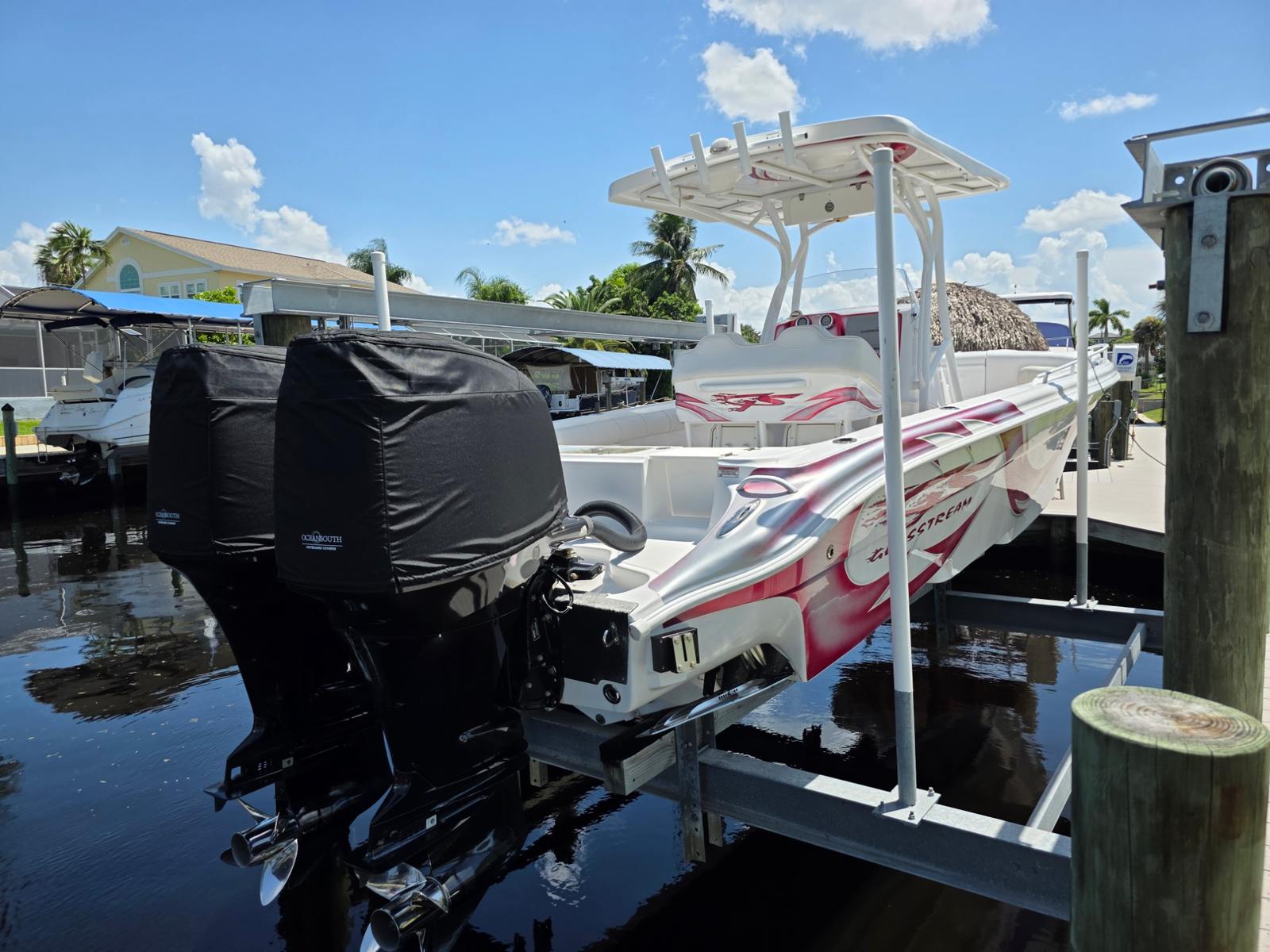 This 328 SCX can do it all! Notable options include: Twin 300 Suzukis with just over 600 hours and a fresh service, trim tabs with indicator, large boarding ladder for diving and sandbar days, livewell, removable aft bench seat for added fishability, dual drop-down bolster seats at the helm, color-matched hard top, Garmin gps, killer JL Audio bluetooth stereo, forward entry head in console, cuddy cabin, new marine flooring, and more! Priced to move fast at $95k and boat was just fully detailed, contact Walker's Marine today for more information!