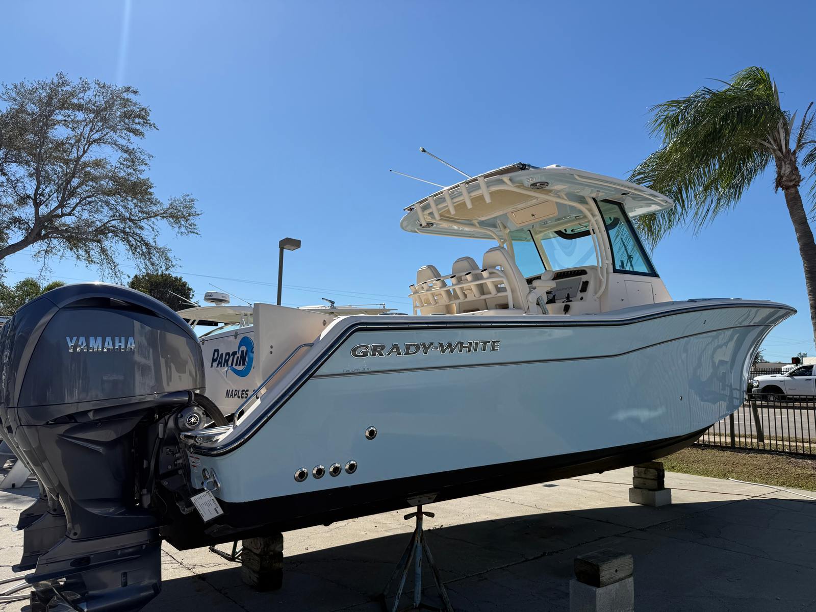 Consigned from a local customer, this impressive 2023 Grady-White Boats 336 Canyon has just been professionally cleaned and serviced, making it fully prepared for its next owner. Powered by triple Yamaha 300HP outboards with only 84 hours of use, this vessel combines power, reliability, and performance. A fresh 100-hour service has just been completed, ensuring that all systems are ready for the water. This 336 Canyon is equipped with twin Garmin 16-inch navigation displays featuring sonar for precise charting and fish finding, a Fusion stereo system for premium sound, Yamaha autopilot, Garmin VHF radio, trim tabs, a fully equipped marine head, and abundant seating from bow to stern for comfort and versatility. The layout is designed for both serious offshore fishing and leisurely family cruising. A fresh coat of bottom paint has also just been applied, adding to the vessel’s turnkey readiness. Call us today to schedule your private viewing. All preowned boat pricing includes financing through Naples Boat Mart with approved credit.