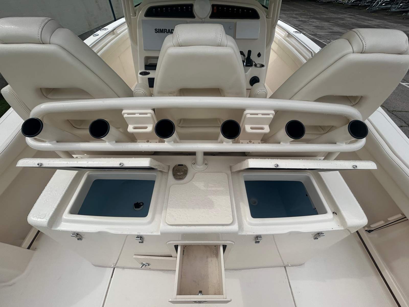 The Grady-White 336 Canyon is designed with practicality in mind, making ownership both enjoyable and convenient. The center console layout maximizes usable space, offering plenty of room for gear, coolers, and personal items. Docking and maneuvering are made easier by the responsive triple-engine setup, allowing you to navigate marinas and tight spaces with confidence. The efficient design also contributes to better fuel management, helping you make the most of every trip. Whether you are storing fishing equipment or preparing for a day on the water, the thoughtful storage solutions and easy-access compartments ensure everything you need is within reach.