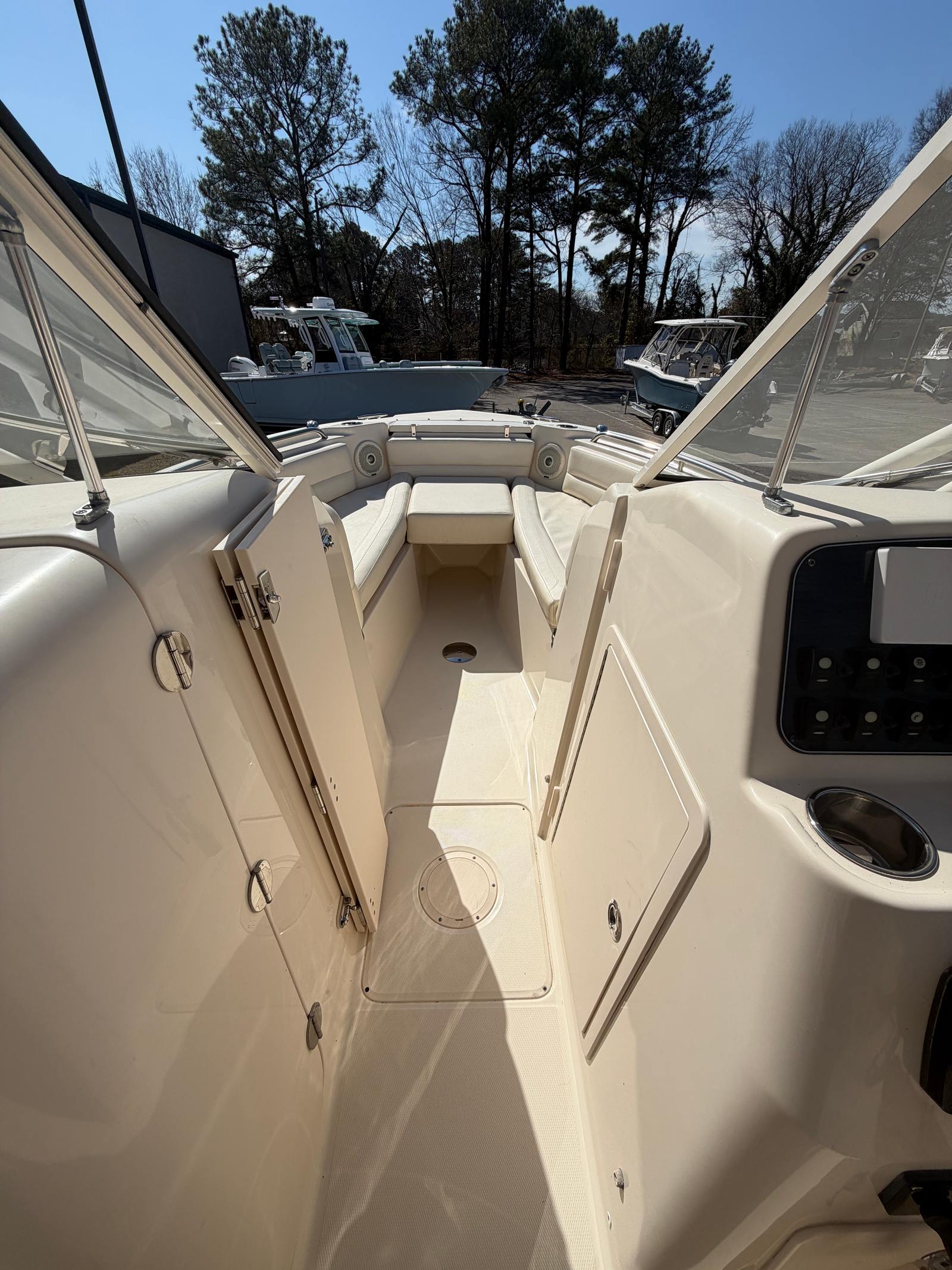 Attention to detail is evident in every corner of this 255 Freedom. Stainless steel cleats, premium upholstery, and durable marine-grade components speak to the builder’s commitment to longevity. Drainage systems are thoughtfully engineered to keep the cockpit dry, and access to mechanical systems is straightforward for ease of maintenance. Every feature serves a purpose, whether enhancing performance, comfort, or safety.