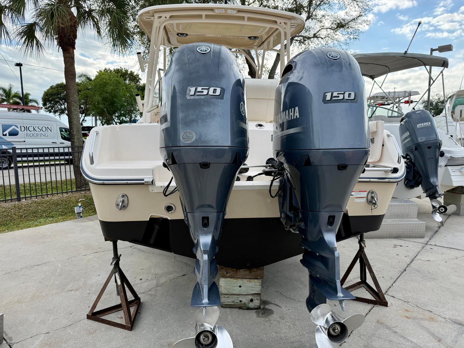 Powering this boat are twin Yamaha F150 four-stroke outboards with only 237 hours, delivering reliable performance, excellent fuel efficiency, and smooth, quiet operation. At the helm, the boat is equipped with a Garmin 9-inch navigation display with sonar, providing clear, easy-to-read charting and depth information for confident navigation inshore or offshore. Yamaha CL5 digital gauges offer real-time engine data and system monitoring at a glance, keeping the operator fully informed at all times.
