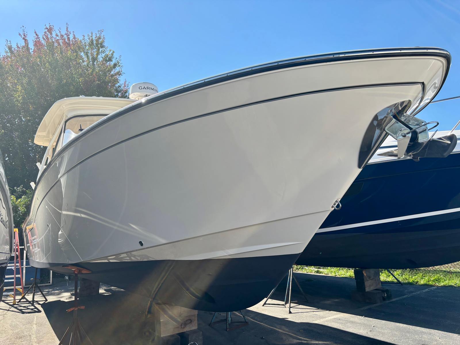 Powering the Grady-White Freedom 325 are two robust engines, delivering a combined 600 horsepower. This impressive setup ensures exhilarating acceleration, smooth cruising, and reliable handling in a variety of conditions. Whether you’re navigating coastal waters or venturing offshore, the twin engines provide the confidence and power needed for both leisurely outings and more spirited adventures. The Freedom 325’s hull design is engineered for stability and efficiency, offering a comfortable ride even when the waters get choppy. With this level of performance, you can reach your favorite destinations quickly and enjoy every moment on the water.