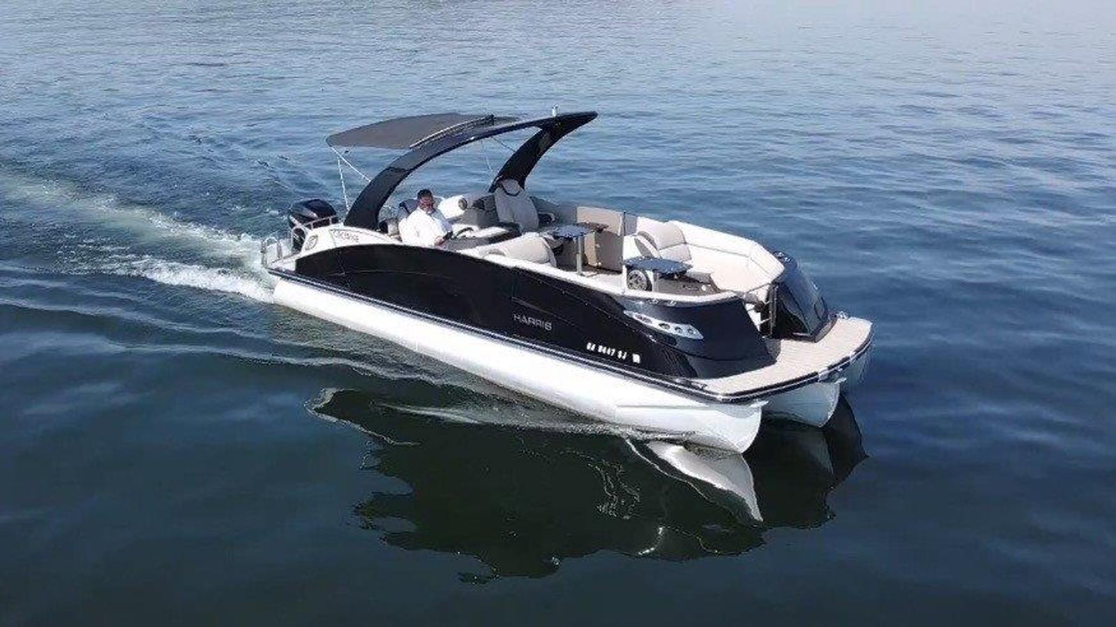 This 2017 Harris 250 Crowne delivers the perfect balance of sport-boat styling and pontoon comfort—an eye-catching, versatile, high-end platform built for relaxation and entertainment.