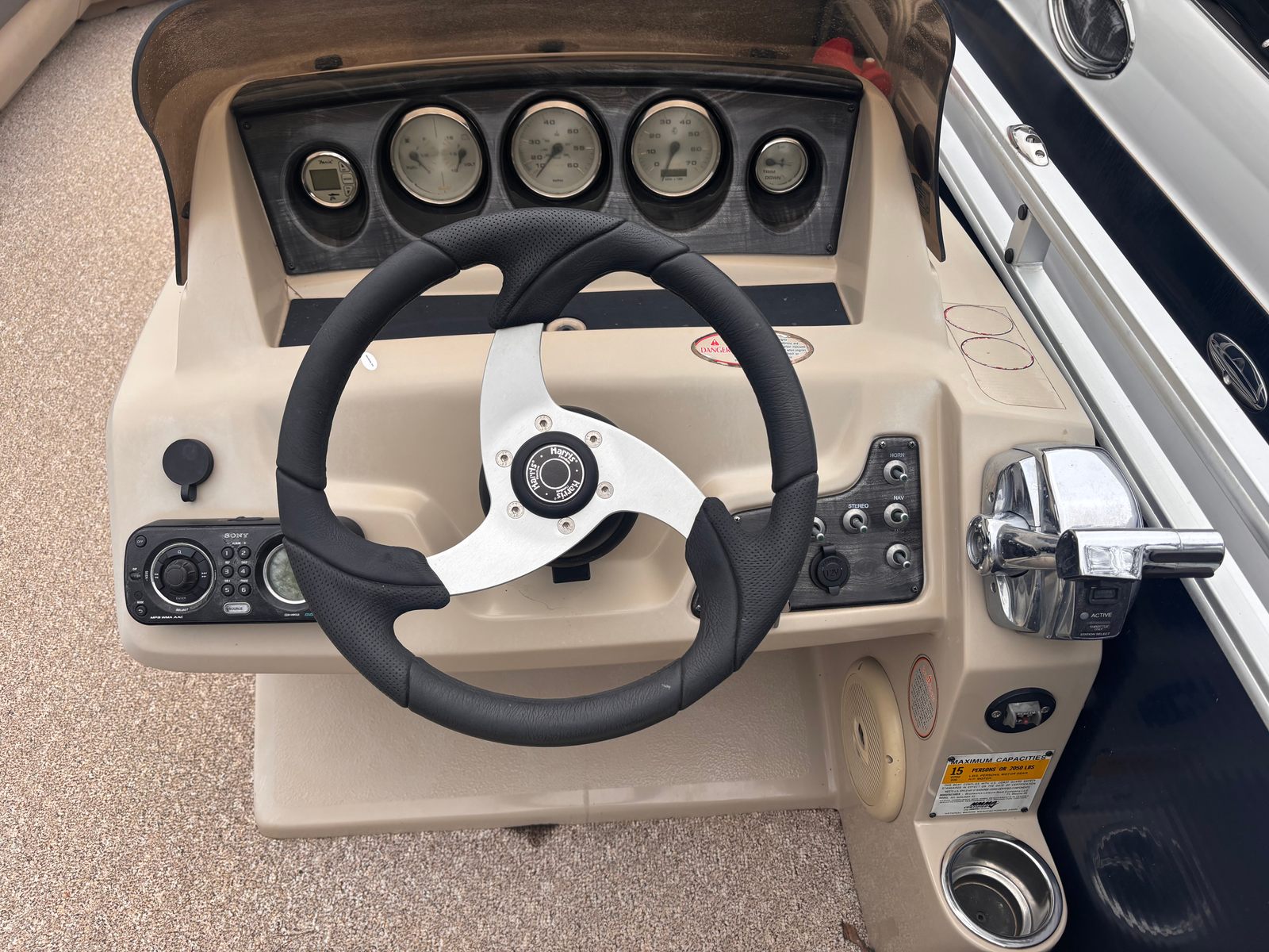 Powered by a single engine delivering a robust 175 horsepower, the Harris Sunliner 220 offers an impressive blend of power and efficiency. This pontoon boat is designed to glide smoothly across the water, providing a stable and responsive ride whether you’re cruising at a leisurely pace or picking up speed for watersports and adventure. The 175-horsepower engine ensures you have the muscle needed for towing tubes or skiers, while also maintaining excellent fuel efficiency for extended outings. With this Harris boat for sale, you’ll enjoy reliable performance and the confidence to explore new waterways with ease.