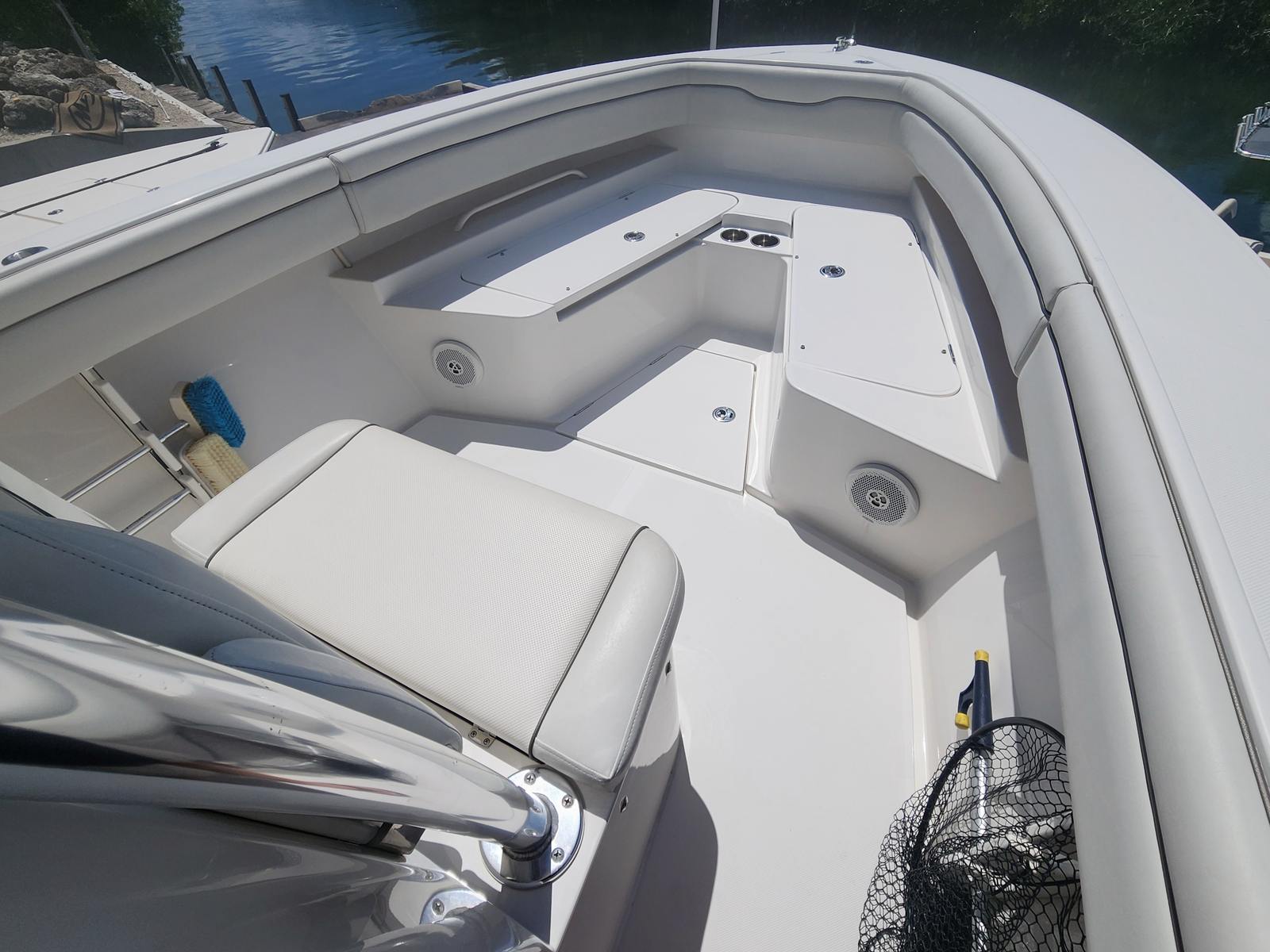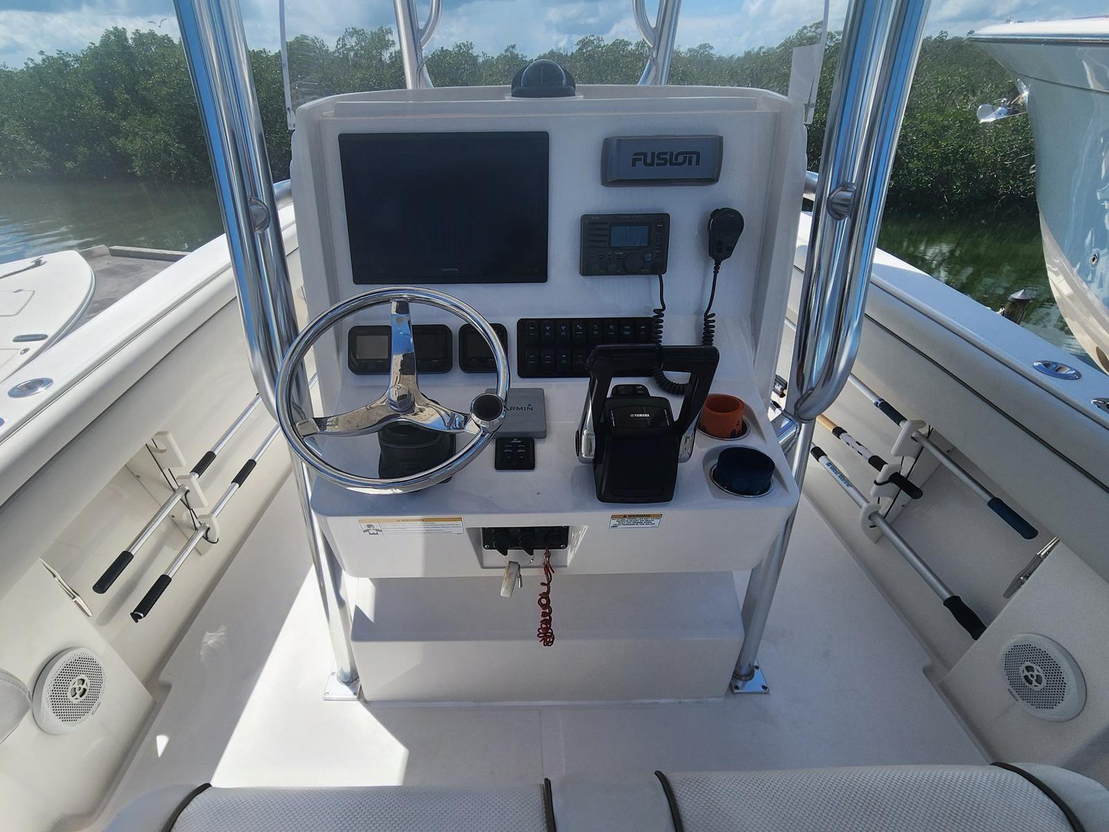 The Jupiter 26 FS is equipped with a range of features designed to enhance your boating experience. Its center console layout maximizes deck space, providing unobstructed movement for fishing, entertaining, or relaxing. The ergonomic helm station offers excellent visibility and intuitive controls, ensuring a comfortable and confident driving experience. The spacious deck is perfect for casting lines, socializing with friends, or simply soaking up the sun. With its thoughtful design and attention to detail, this Jupiter boat for sale is built to accommodate a variety of on-water activities.
