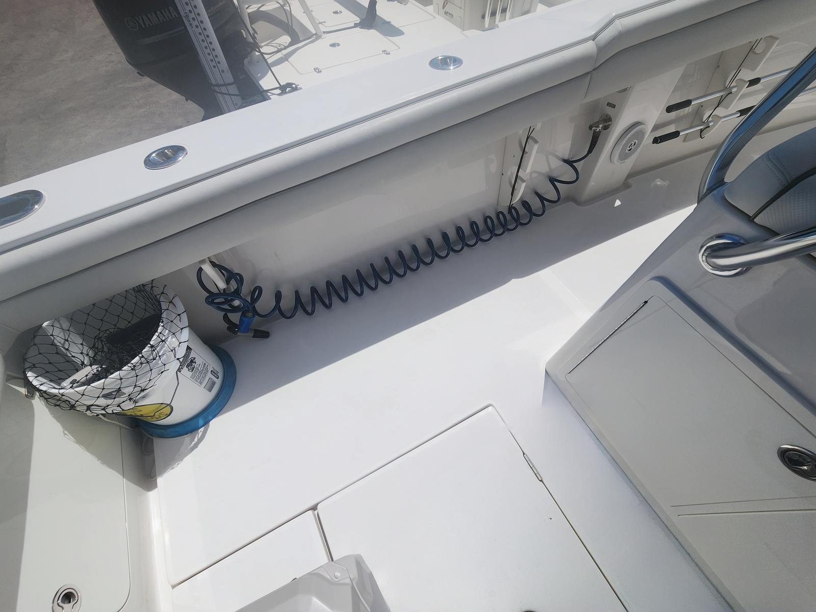 Powering the Jupiter 26 FS are twin engines, delivering a combined 300 horsepower. With only 530 engine hours, these engines offer reliable performance and plenty of life for future adventures. The dual-engine setup ensures optimal power and control, allowing you to navigate open waters with confidence and agility. Whether you’re cruising along the coastline, heading offshore for a fishing expedition, or simply enjoying a day on the water, the Jupiter 26 FS delivers smooth acceleration, responsive handling, and impressive top-end speed. This center console boat is engineered for those who demand both excitement and dependability from their vessel.